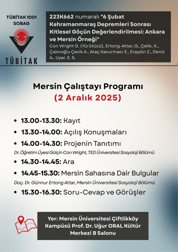 "6 Şubat Kahramanmaraş Depremleri Sonrası Kitlesel Göçün Değerlendirilmesi: Ankara ve Mersin Örneği" Projesi Mersin Çalıştayı