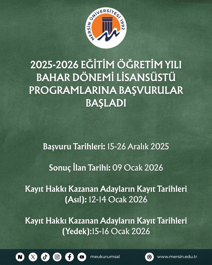 2025-2026 Eğitim Öğretim Yılı Bahar Dönemi Lisansüstü Programlarına Başvurular Başladı