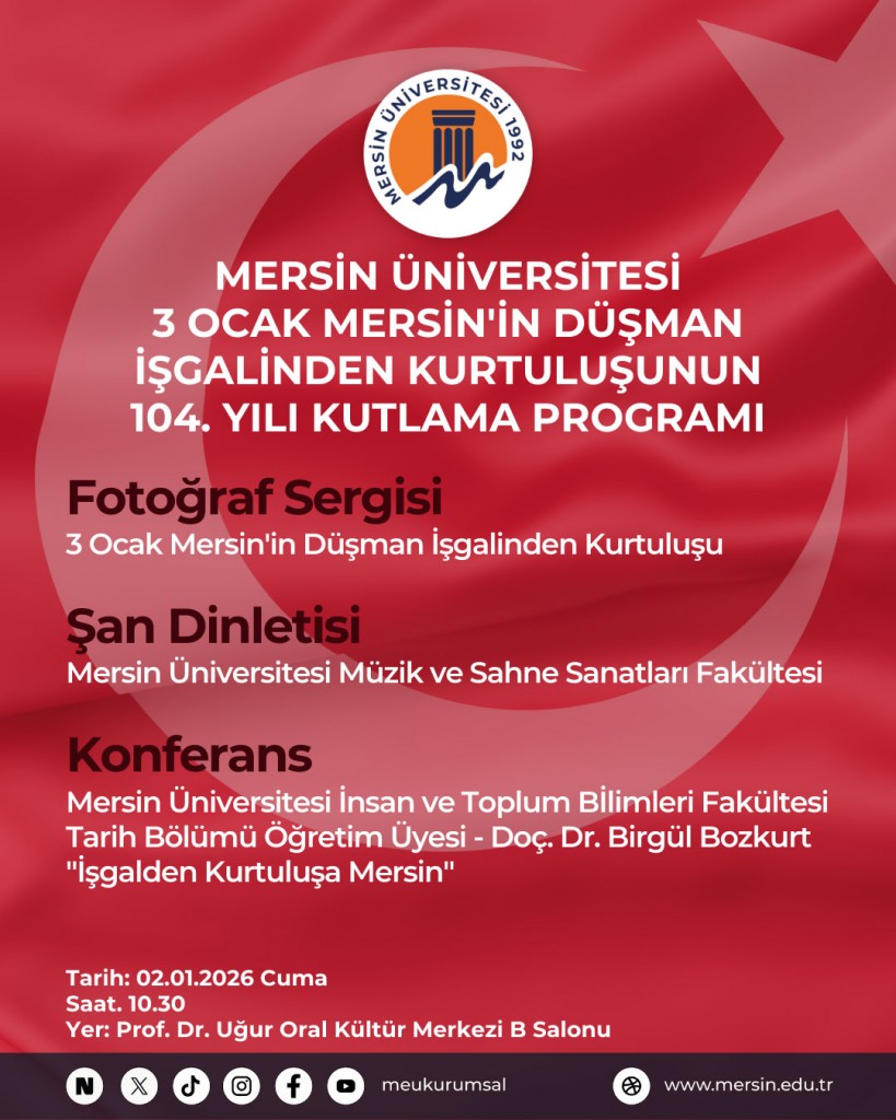 3 Ocak Mersin'in Düşman İşgalinden Kurtuluşunun 104. Yılı Kutlama Programı