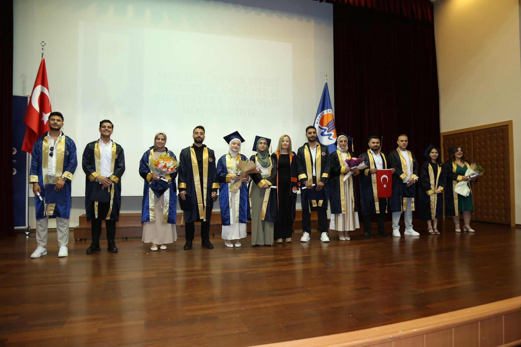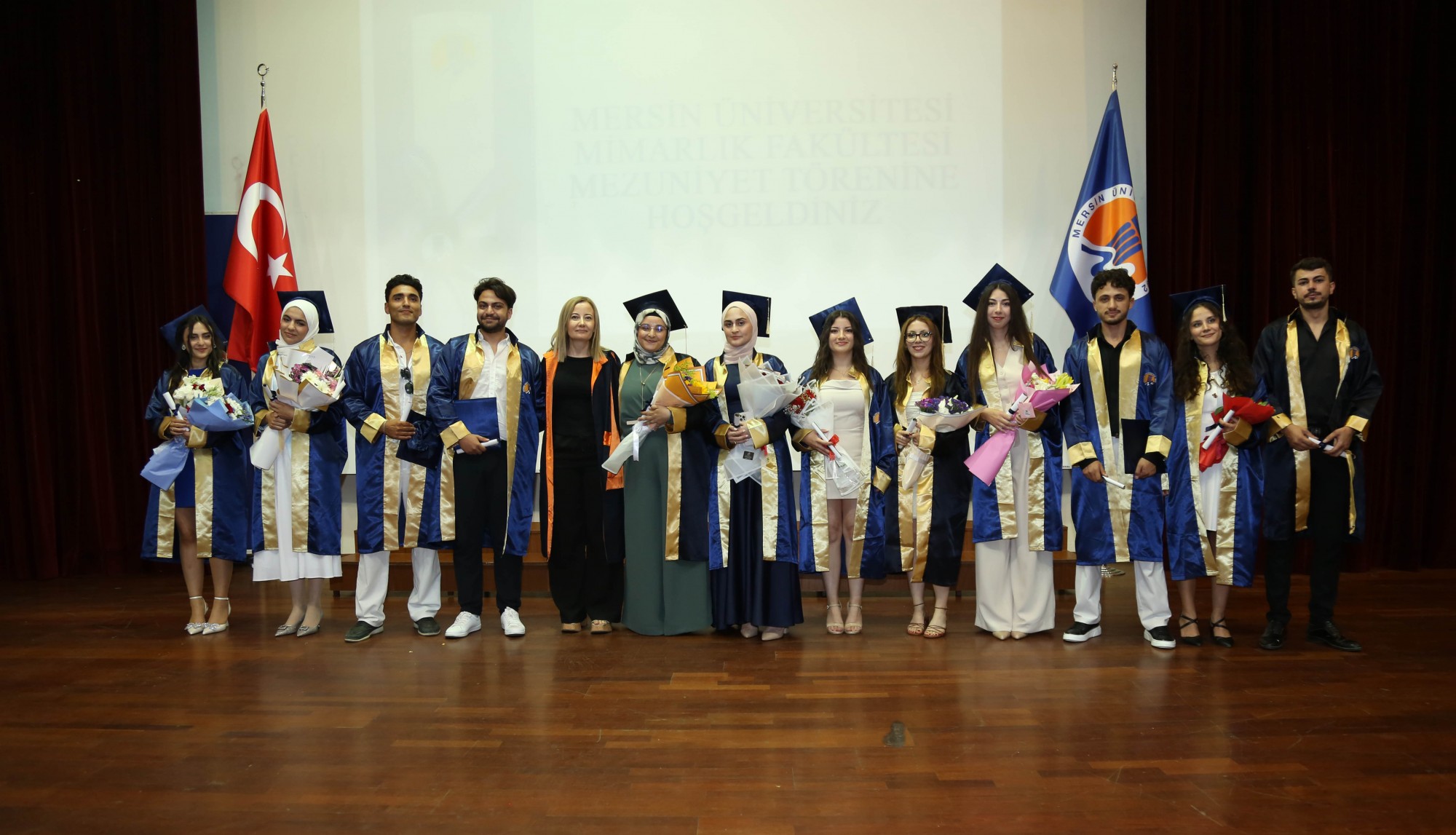 Üniversitemiz Mimarlık Fakültesi mezuniyet töreni 20 Haziran Cuma günü Üniversitemiz Prof. Dr. Uğur Oral Kültür Merkezi’nde Rektör Yardımcımız Prof. Dr. Mehmet İsmail Yağcı, Mimarlık Fakültesi Dekanı Prof. Dr. Nida Naycı, TMMOB Mimarlar Odası Mersin Şubesi Yönetim Kurulu Üyeleri ve Şehir Plancıları Odası Mersin Temsilcisi, akademik ve idari personel, öğrenciler ve ailelerinin katılımıyla gerçekleştirildi.