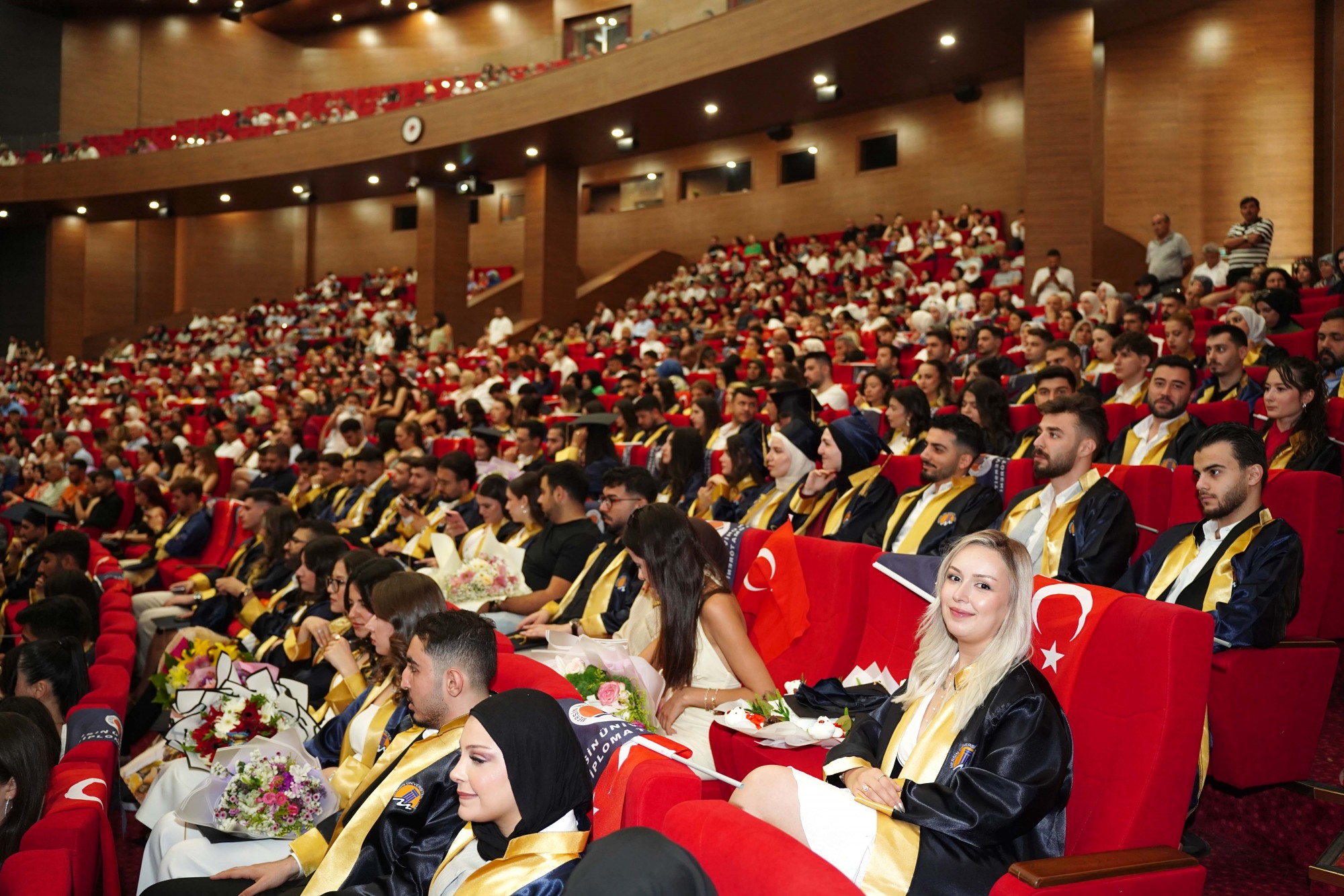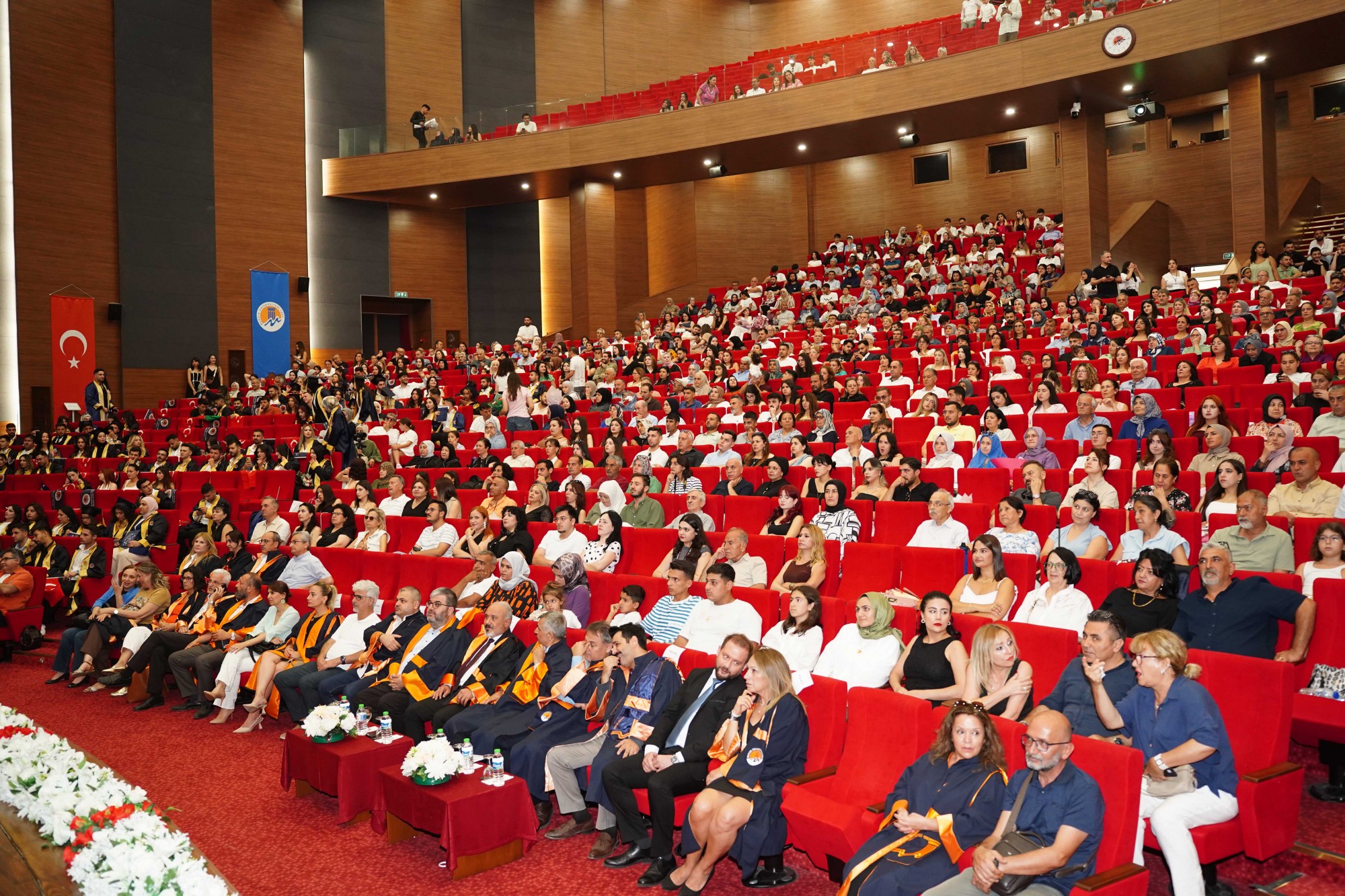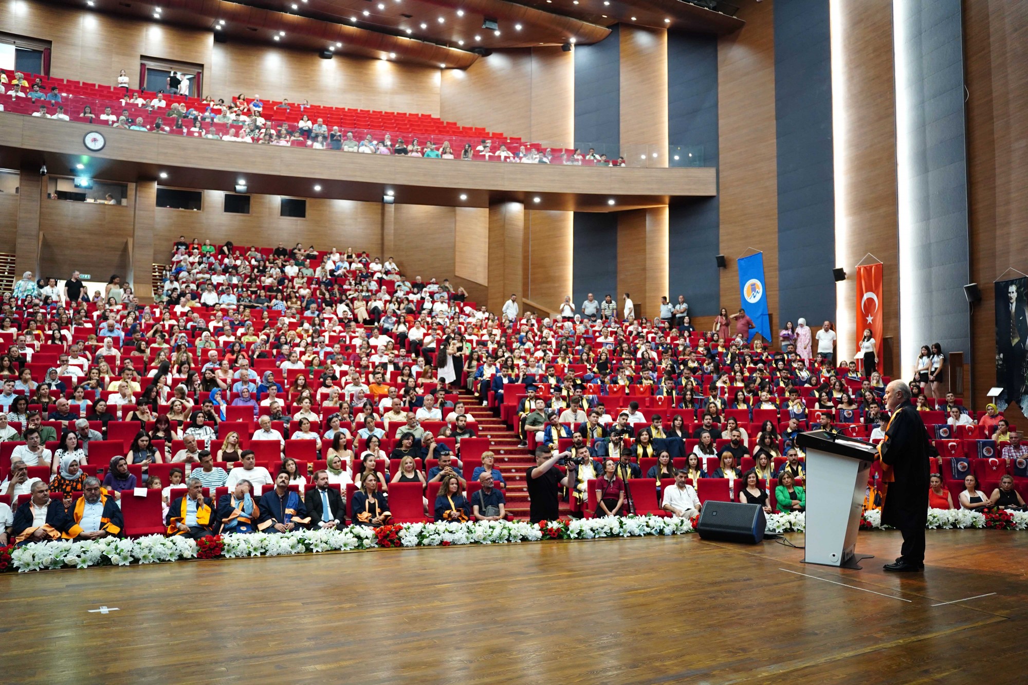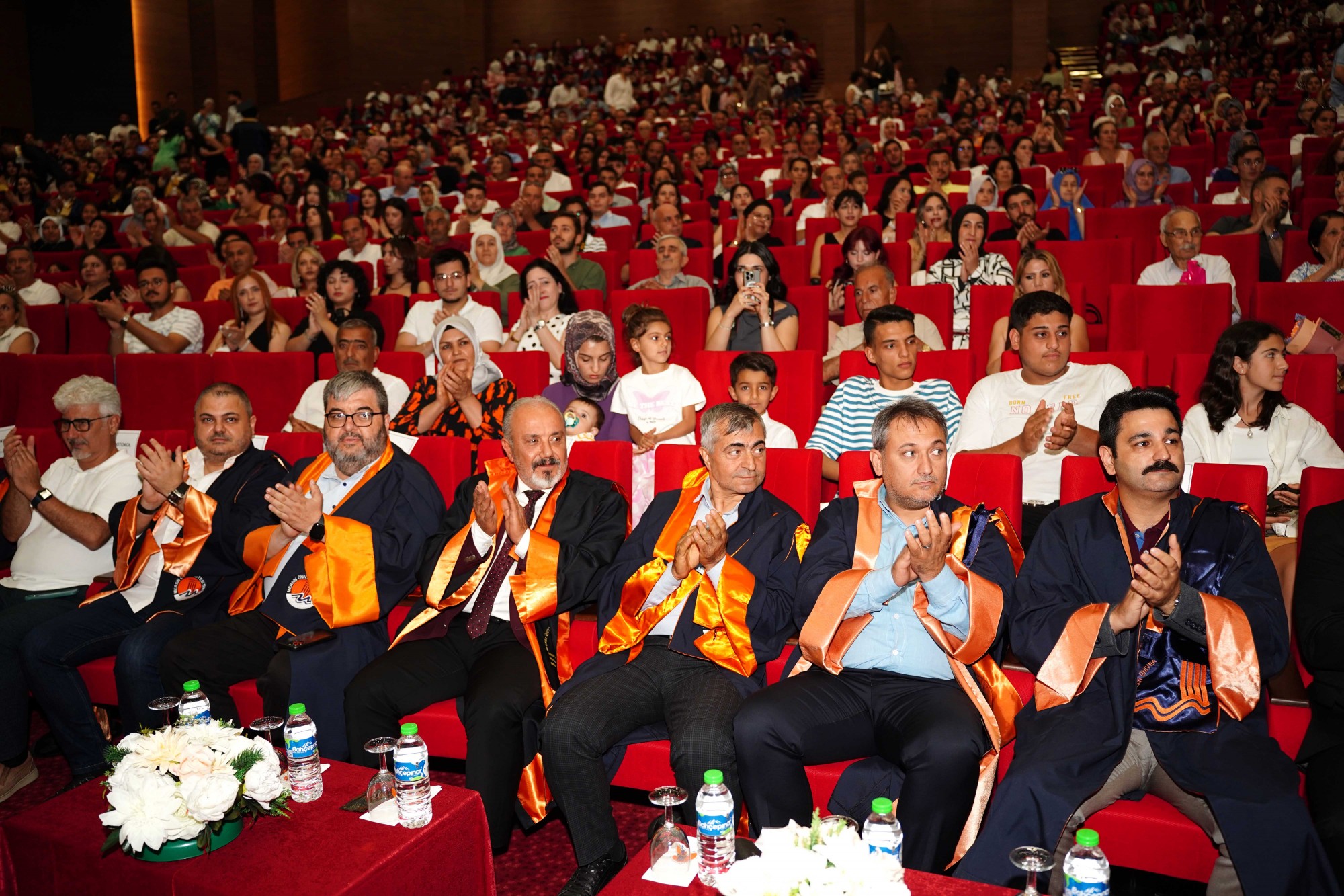 24 Haziran Salı günü Üniversitemiz Akdeniz Kültür Merkezi’nde gerçekleştirilen törene Rektör Yardımcımız Prof. Dr. Mehmet İsmail Yağcı, Rektör Danışmanımız Doç. Dr. Buğra Sarı, Dekan Prof. Dr. Cemal Altan, Sosyal Bilimler Meslek Yüksekokulu Müdürümüz Prof. Dr. İlhan Ege, akademik ve idari personel, mezunlarımız ve yakınları katıldı. Saygı Duruşu ve İstiklal Marşı’mızın okunmasından sonra törende açış konuşmalarına geçildi.