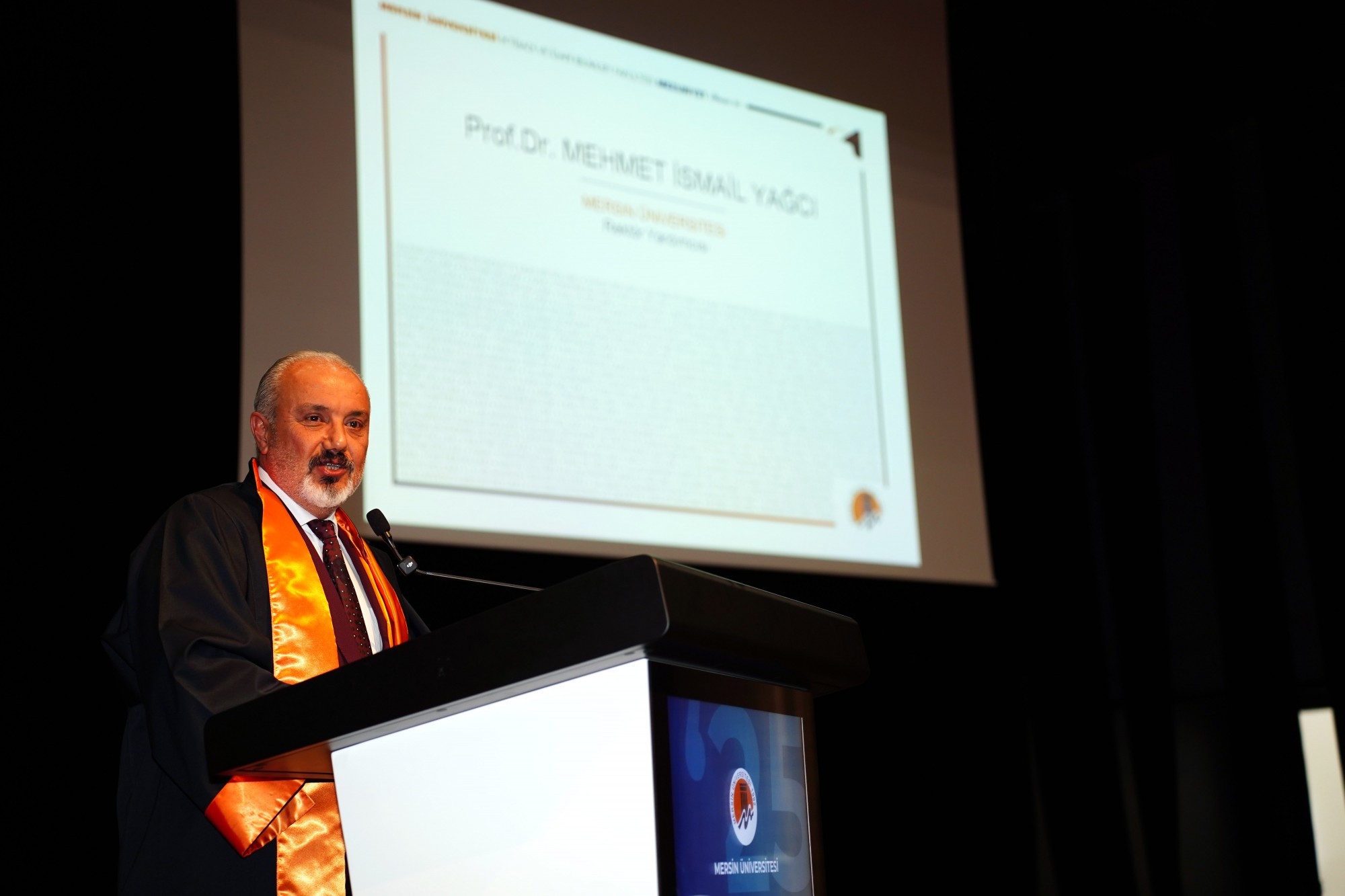 Üniversitemizin kapılarının mezunlarımıza her zaman açık olduğunu belirten Prof. Dr. Mehmet İsmail Yağcı, “Bir üniversiteyi saygın kılan, mezunlarının başarılarıdır. Sizler nereye giderseniz, bu üniversite oraya taşınır. Bu üniversitenin kapıları sizlere her zaman açık. Sizler bizim evlatlarımızsınız, kardeşlerimizsiniz. Her zaman Mersin Üniversitesi ailesinin bir parçası olarak kalacaksınız. Yabancı uyruklu öğrencilerimize de ayrıca seslenmek istiyorum. Sizler bu ülkenin havasını soludunuz, suyunu içtiniz, ekmeğini yediniz. Türkiye’yi ve bu ülkenin değerlerini içinizde yaşatın. Şanlı bayrağımızı sevin, Mersin Üniversitesi bayrağını da her zaman gururla taşıyın. Burası sizin yuvanız, aileniz. Hepinizin ileride büyük başarılara imza atacağınızı biliyorum. Yolunuz açık olsun. Hepinize sağlıklı, uzun, mutlu ömürler diliyorum.” ifadelerini kullandı.