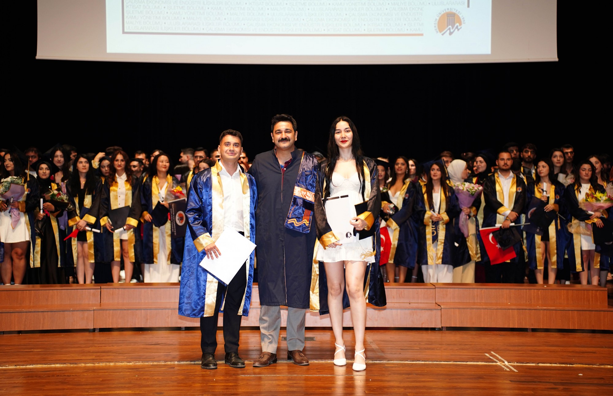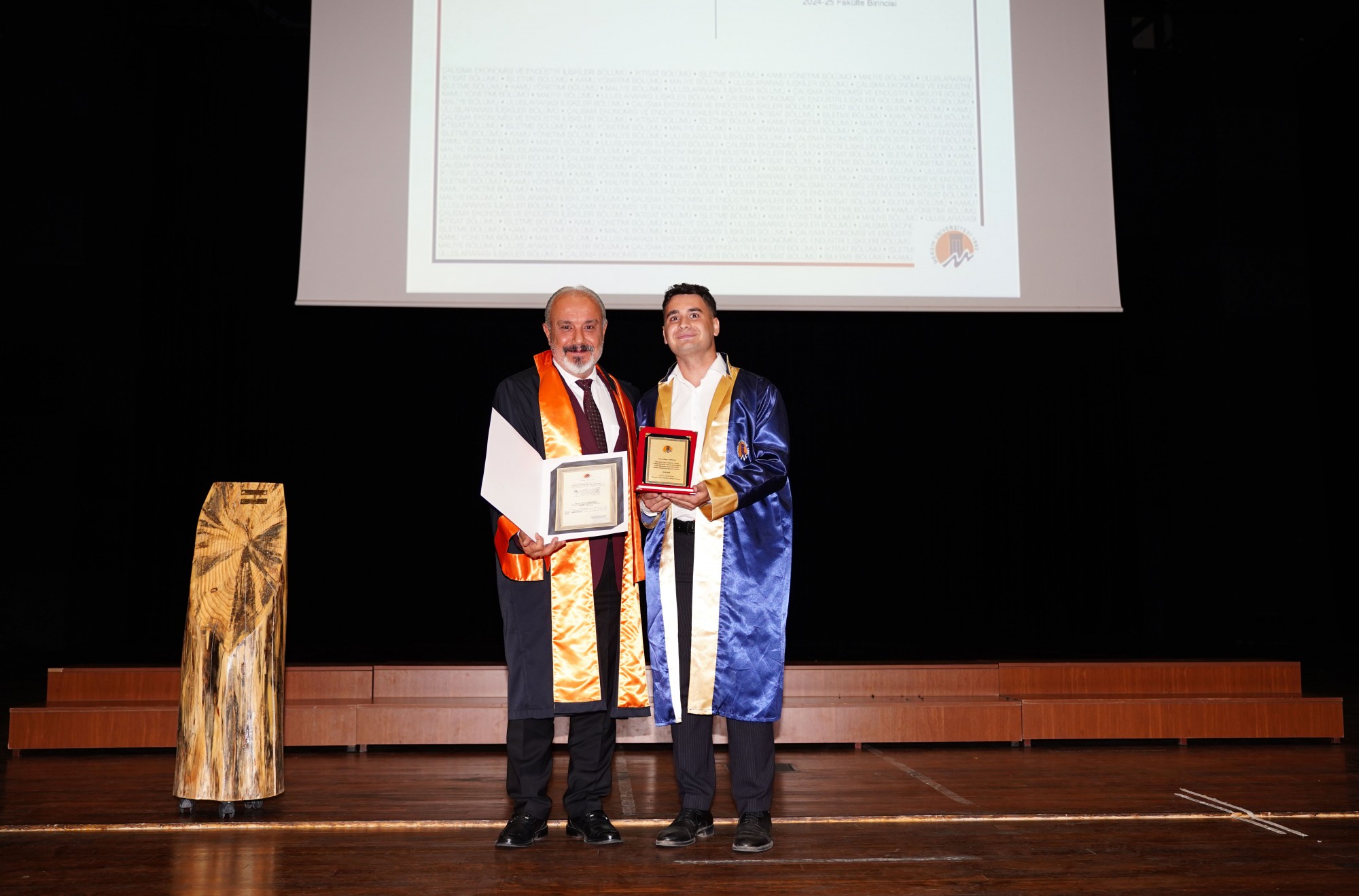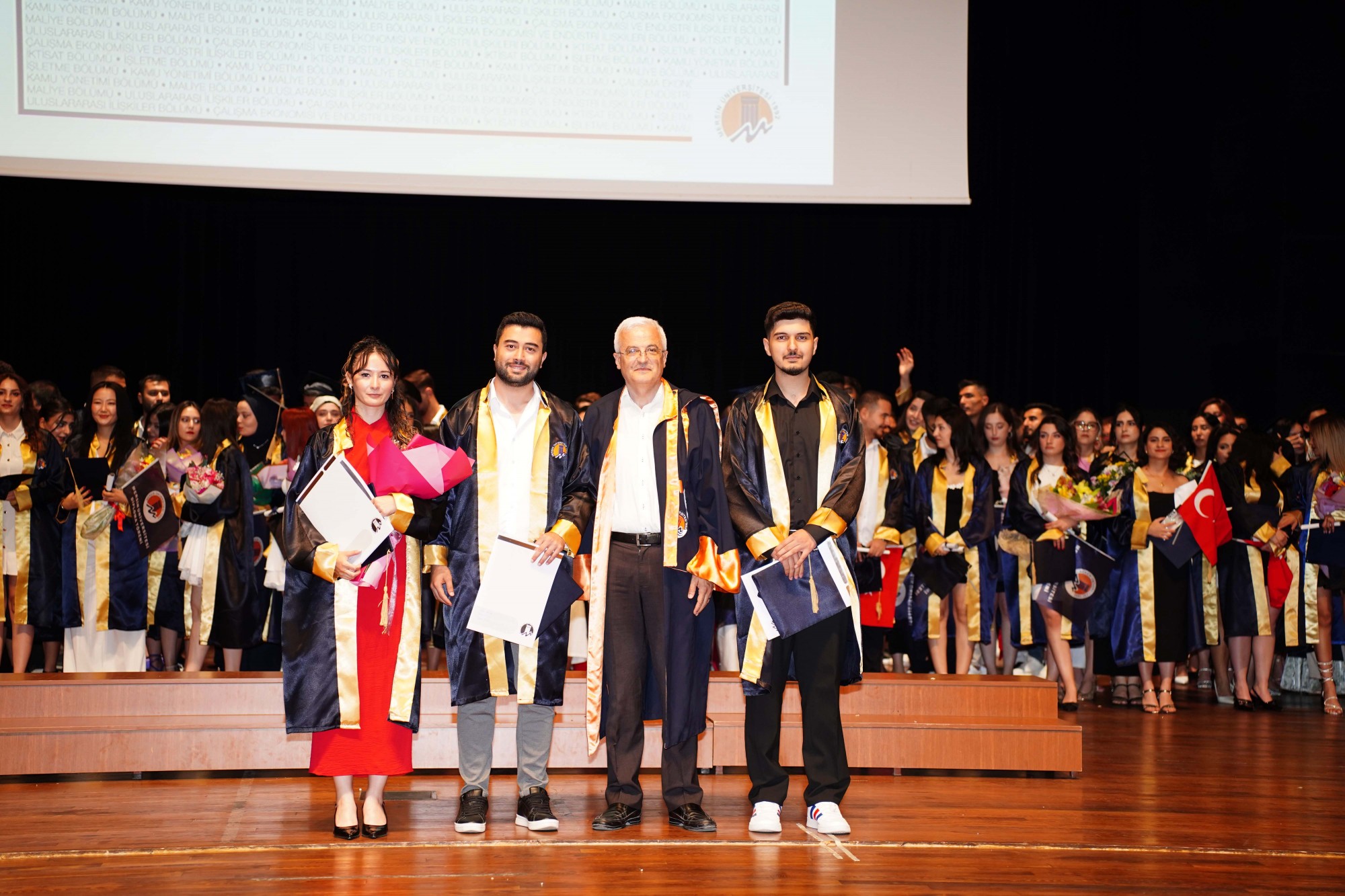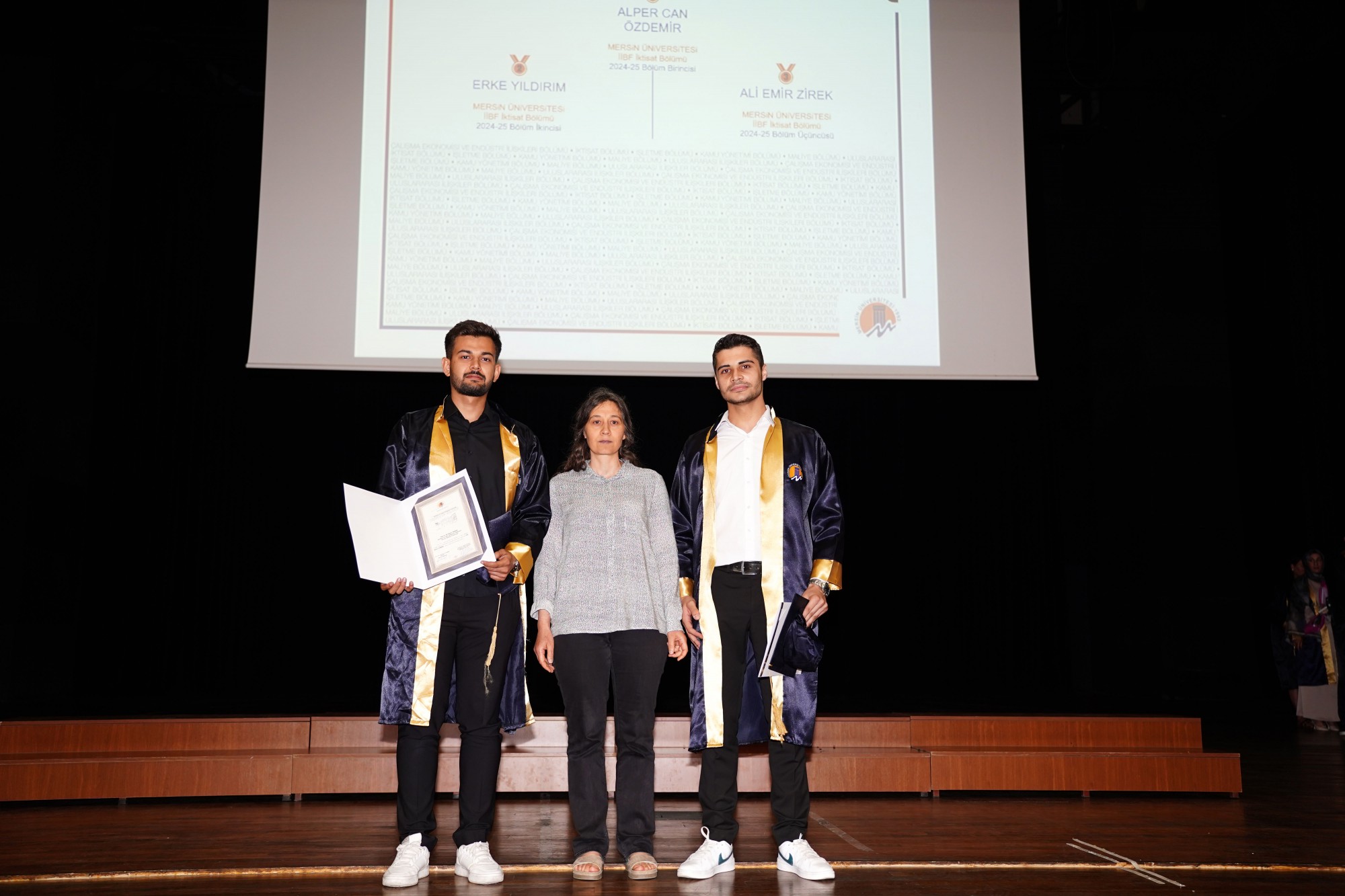 Konuşmaların ardından fakülte birincisi Başar Börüban mezuniyet yaş kütüğüne birincilik plaketini çaktıktan sonra plaketini Rektör Yardımcımız Prof. Dr. Mehmet İsmail Yağcı’nın elinden aldı. Daha sonrasında fakülte ikincisi İşletme Bölümü öğrencilerinden Dina Naji Ali Ahmed’e belgesini Dekan Prof. Dr. Cemal Altan, fakülte üçüncüsü İktisat Bölümü öğrencilerinden Alper Can Özdemir’e ise belgesini Dekan Yardımcısı Dr. Öğr. Üyesi Aytül Güneşer Demirci takdim etti.