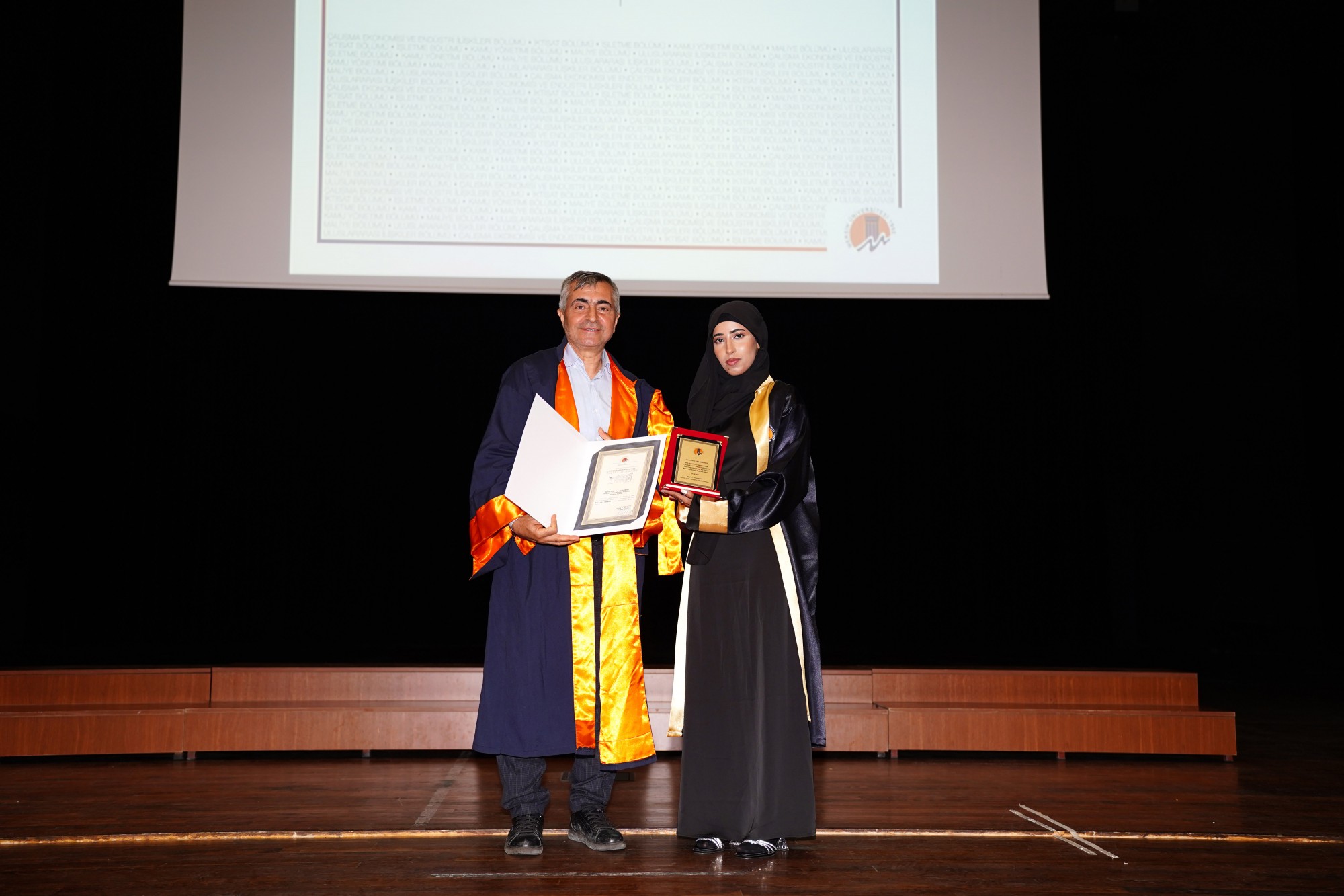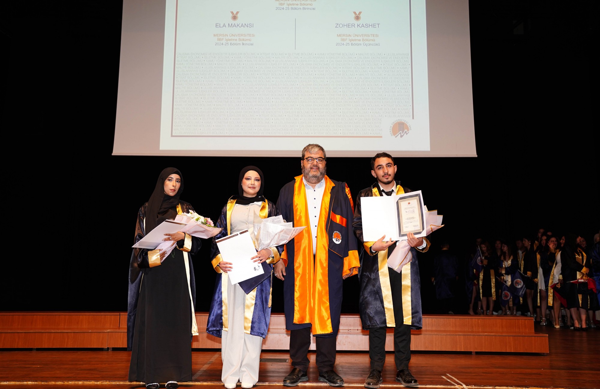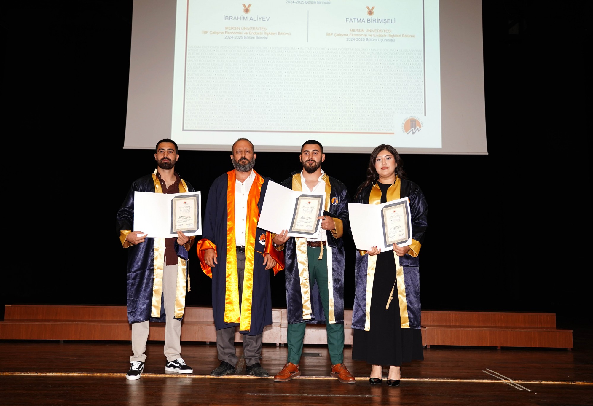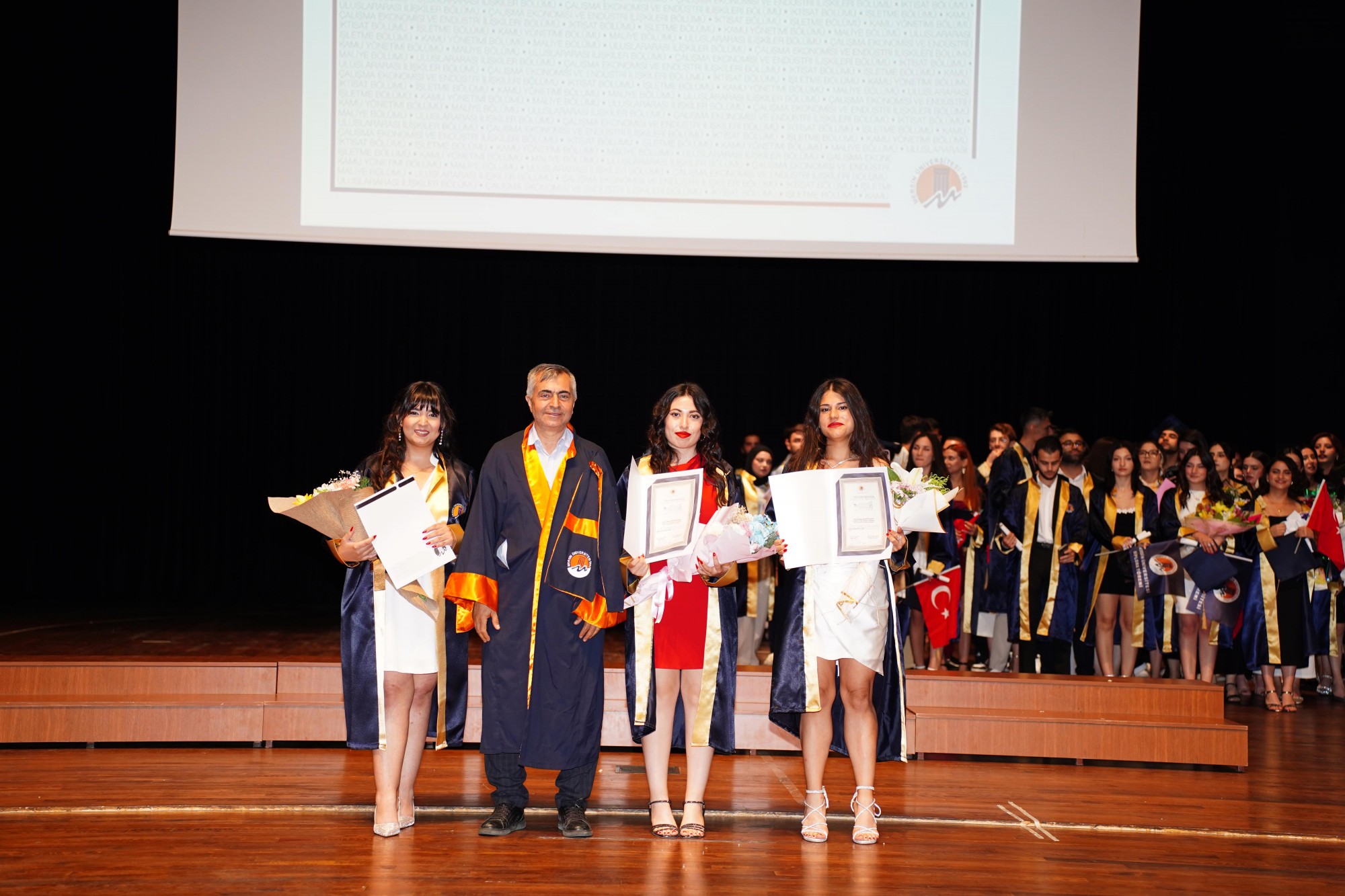 Konuşmaların ardından fakülte birincisi Başar Börüban mezuniyet yaş kütüğüne birincilik plaketini çaktıktan sonra plaketini Rektör Yardımcımız Prof. Dr. Mehmet İsmail Yağcı’nın elinden aldı. Daha sonrasında fakülte ikincisi İşletme Bölümü öğrencilerinden Dina Naji Ali Ahmed’e belgesini Dekan Prof. Dr. Cemal Altan, fakülte üçüncüsü İktisat Bölümü öğrencilerinden Alper Can Özdemir’e ise belgesini Dekan Yardımcısı Dr. Öğr. Üyesi Aytül Güneşer Demirci takdim etti.
