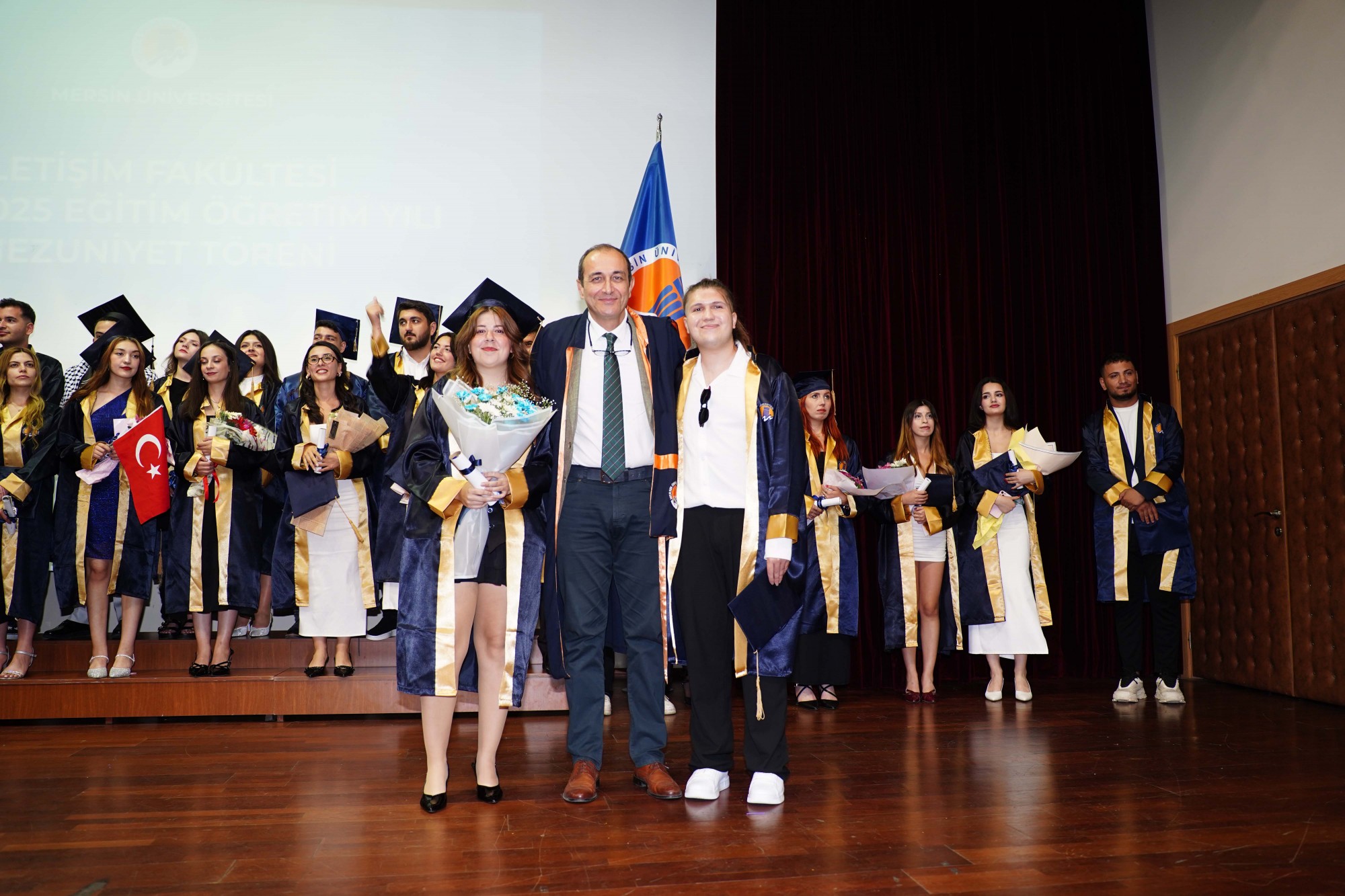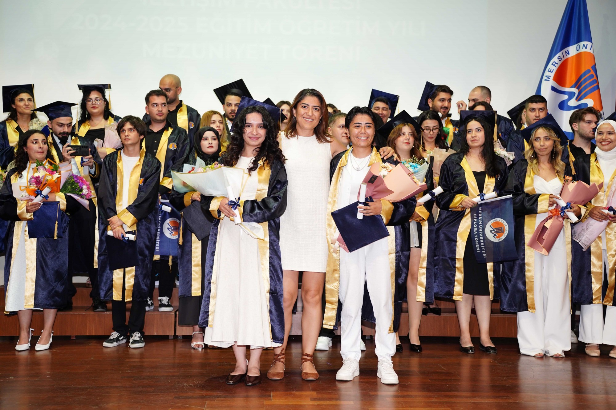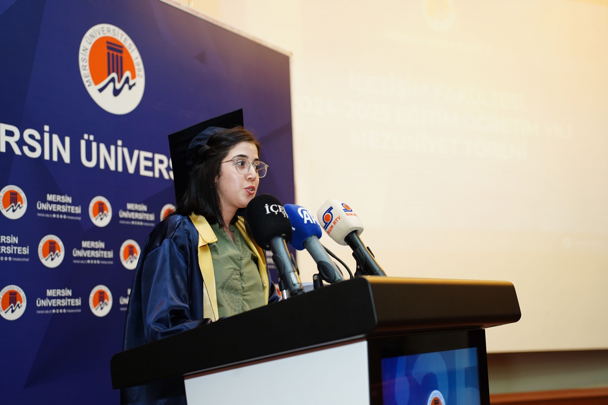 İletişim Fakültesi Dekanı Prof. Dr. Aslıhan Ardıç Çobaner konuşmasında, “Bugün sizler sadece bir üniversiteyi değil, aynı zamanda bir hayat evresini başarıyla tamamladınız. Yıllar süren emeğinizin, çalışkanlığınızın ve azminizin bir sonucu olarak bugün buradasınız. Artık sadece birer öğrenci değil; sorumluluk sahibi, yaratıcı, eleştirel düşünebilen ve iletişim çağının ihtiyaçlarına cevap verebilecek bireylersiniz. Bilginiz, duruşunuz ve değerlerinizle hem mesleğinizi hem de toplumu dönüştürecek potansiyele sahipsiniz. Yolunuzda kararlılıkla ilerlerken, Mersin Üniversitesi’nin bir ferdi olarak bu kimliği her zaman onurla taşıyacağınıza yürekten inanıyorum.” ifadelerini kullandı.