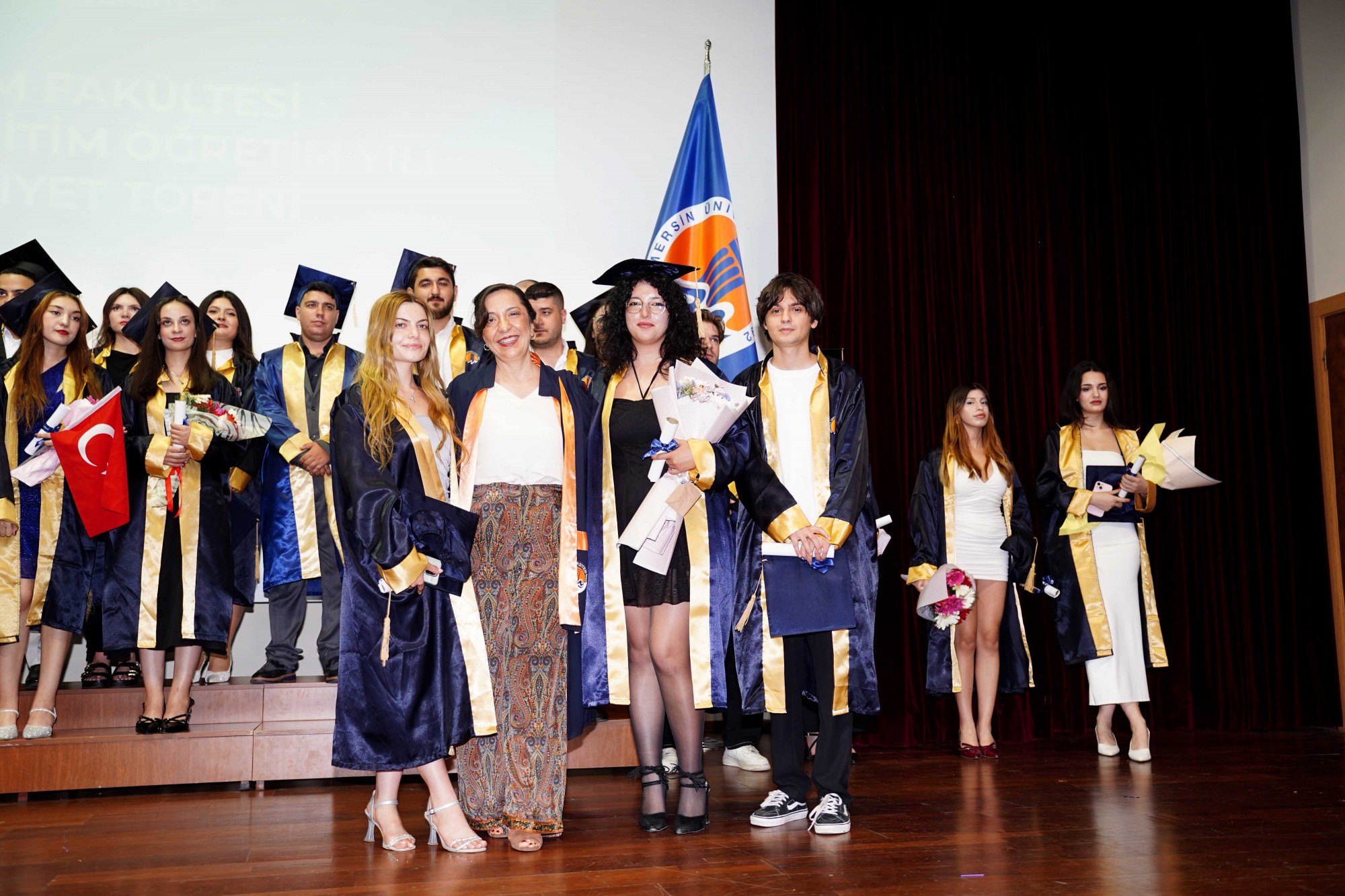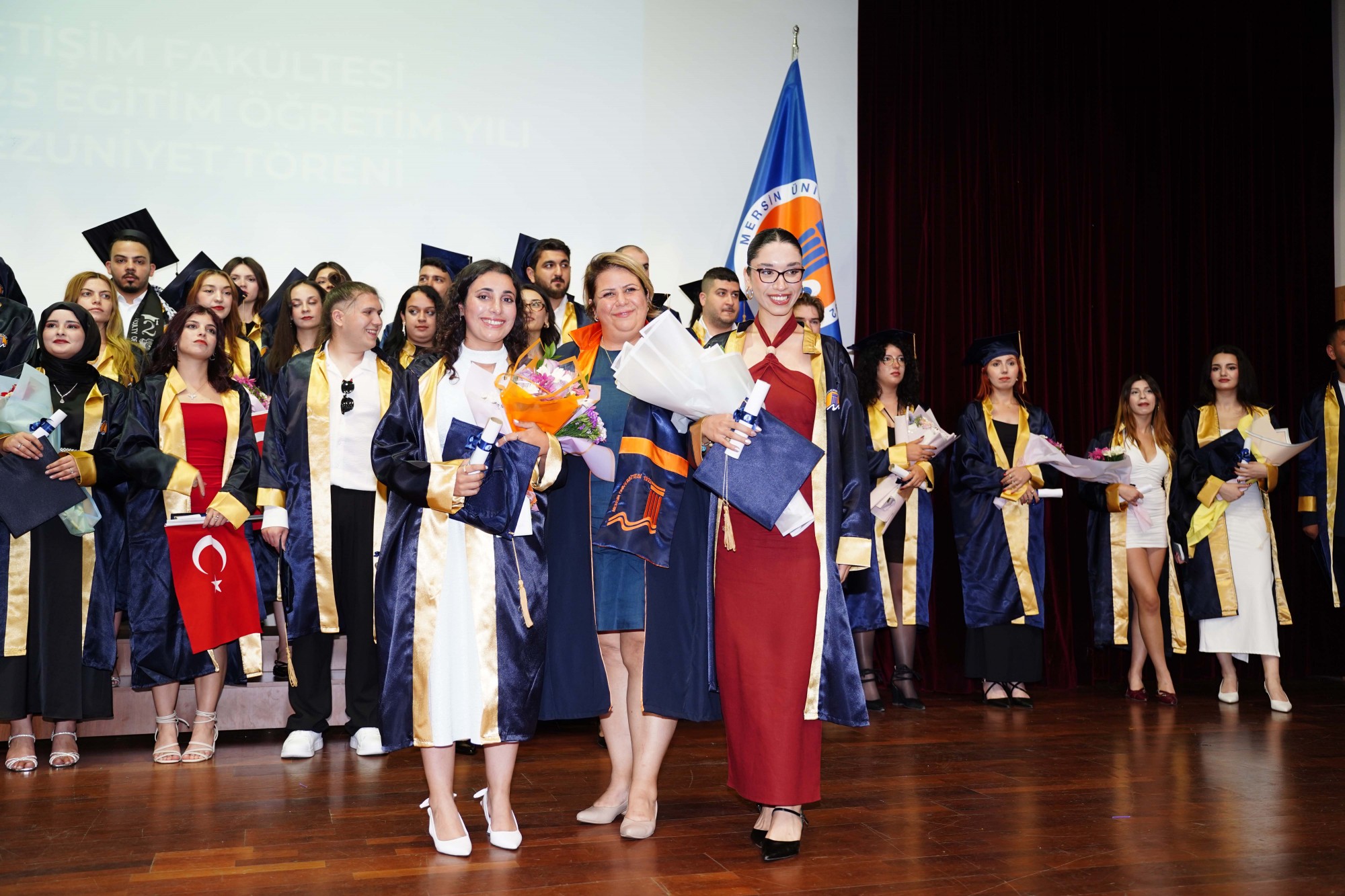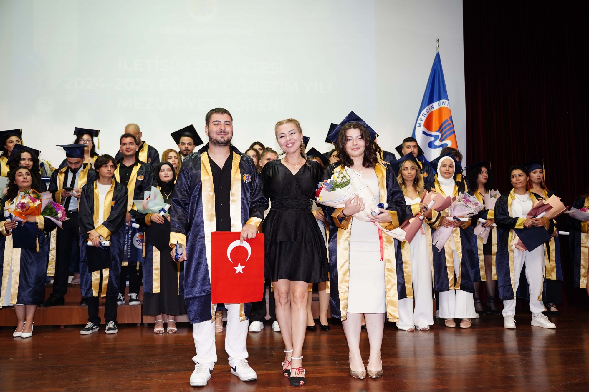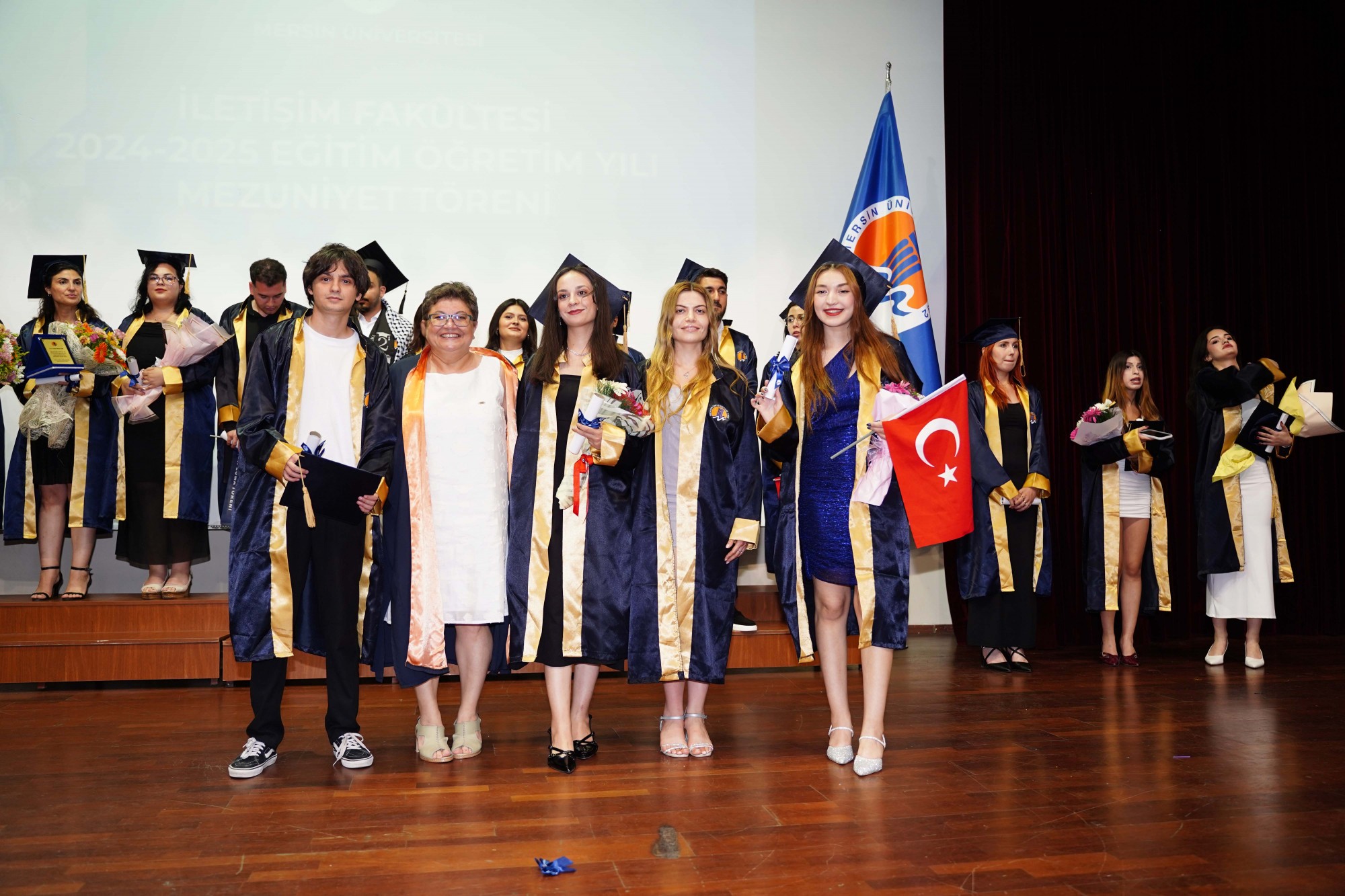 İletişim Fakültesi Dekanı Prof. Dr. Aslıhan Ardıç Çobaner konuşmasında, “Bugün sizler sadece bir üniversiteyi değil, aynı zamanda bir hayat evresini başarıyla tamamladınız. Yıllar süren emeğinizin, çalışkanlığınızın ve azminizin bir sonucu olarak bugün buradasınız. Artık sadece birer öğrenci değil; sorumluluk sahibi, yaratıcı, eleştirel düşünebilen ve iletişim çağının ihtiyaçlarına cevap verebilecek bireylersiniz. Bilginiz, duruşunuz ve değerlerinizle hem mesleğinizi hem de toplumu dönüştürecek potansiyele sahipsiniz. Yolunuzda kararlılıkla ilerlerken, Mersin Üniversitesi’nin bir ferdi olarak bu kimliği her zaman onurla taşıyacağınıza yürekten inanıyorum.” ifadelerini kullandı.