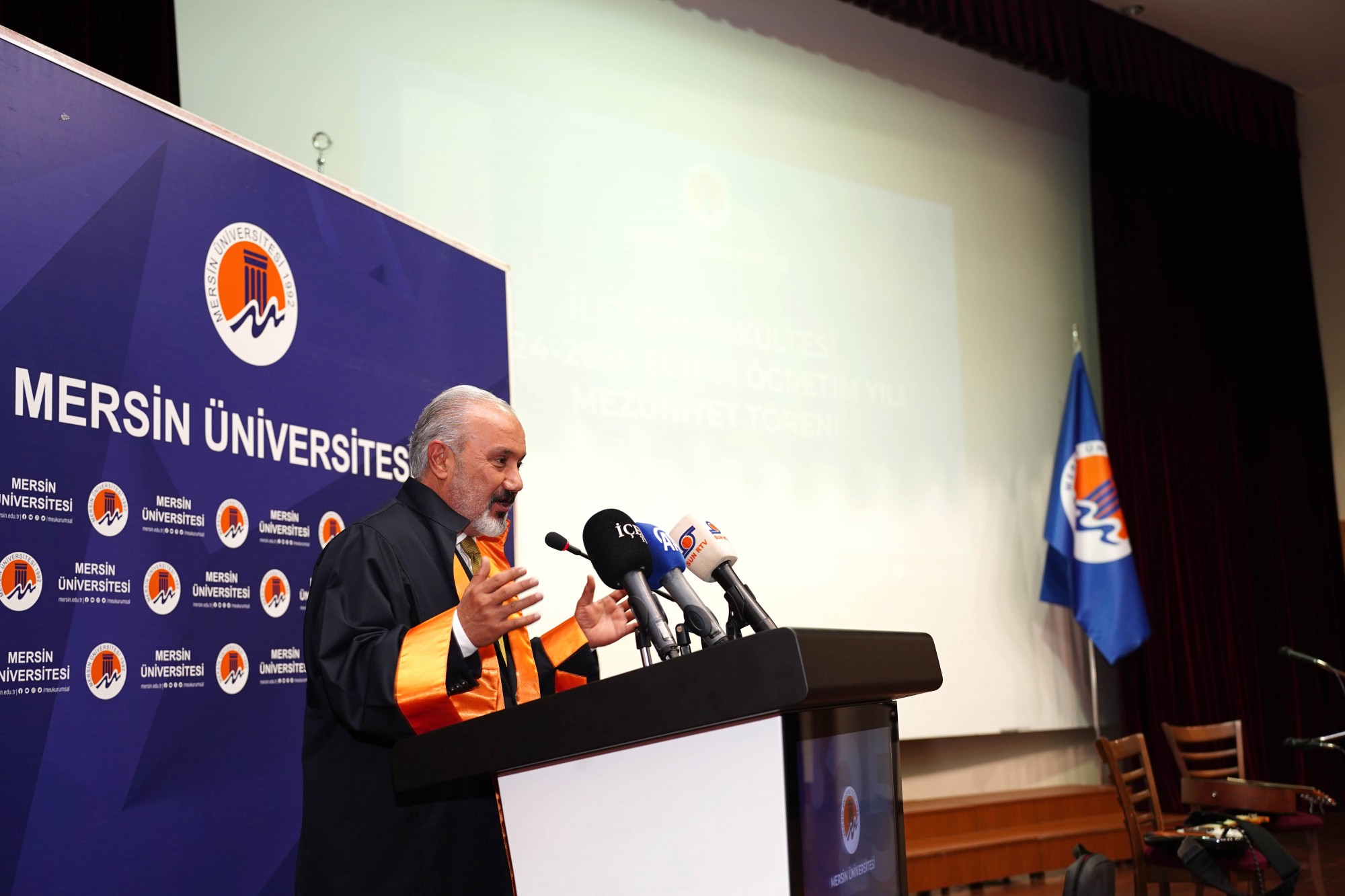 Mezunlarımızı hem maddi hem manevi anlamda destekleyen velilerimize anne babalara destekleyici akrabalara dostlara teşekkür eden Prof. Dr. Yağcı, “Üniversiteleri üniversite yapan mezunların başarısıdır. Mezunlar hayatta ne kadar başarılı olursa, okudukları üniversiteye o kadar değer katarlar. Üniversiteler de bu şekilde saygınlık kazanır. O yüzden sizlerin başarılı olmasını istiyorum. İlerde umuyorum ki sektörünüzde çok büyük başarılara imza atacaksınız. İnsan ilişkilerinizde, çalışma ilişkinizde, toplumla olan ilişkinizde adil olun. Hakkaniyetli olun. Gerçeklerden sapmayın ve bunun yanı sıra mutlaka merhametli olun. Bir insan olarak bizi diğer canlılardan ayıran en önemli özellik merhamet duygumuzun olması. Bir iletişimci olacaksak, eğer birbirimizi anlayacaksak yaklaşımımızda merhamet duygumuzun olmasının gerektiğini düşünüyorum. Mersin Üniversitesi, bizim de sizin de yuvanız. Her zaman kapısı açık olan, sığınabileceğiniz bir liman. Her birinizi tebrik ediyor, başarılar diliyorum.” dedi.