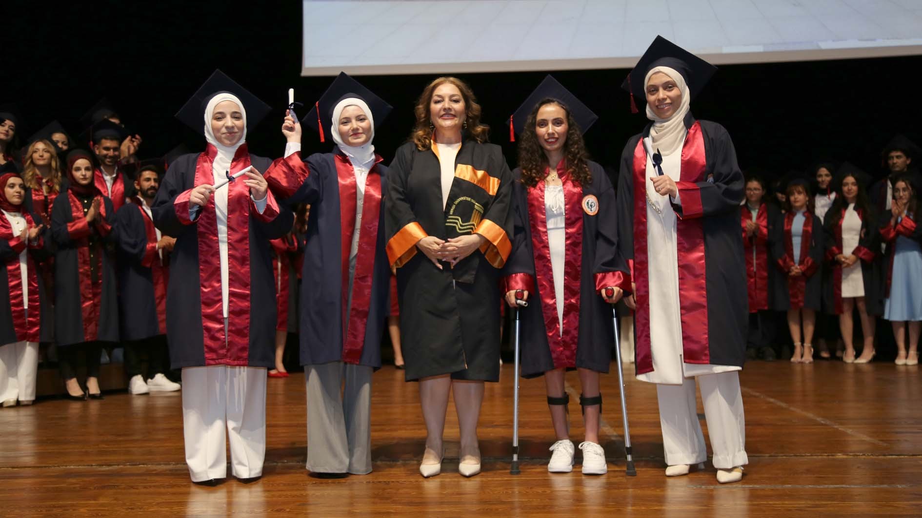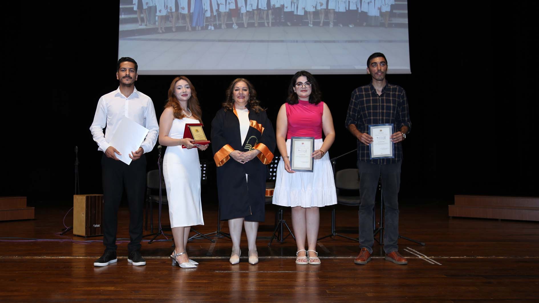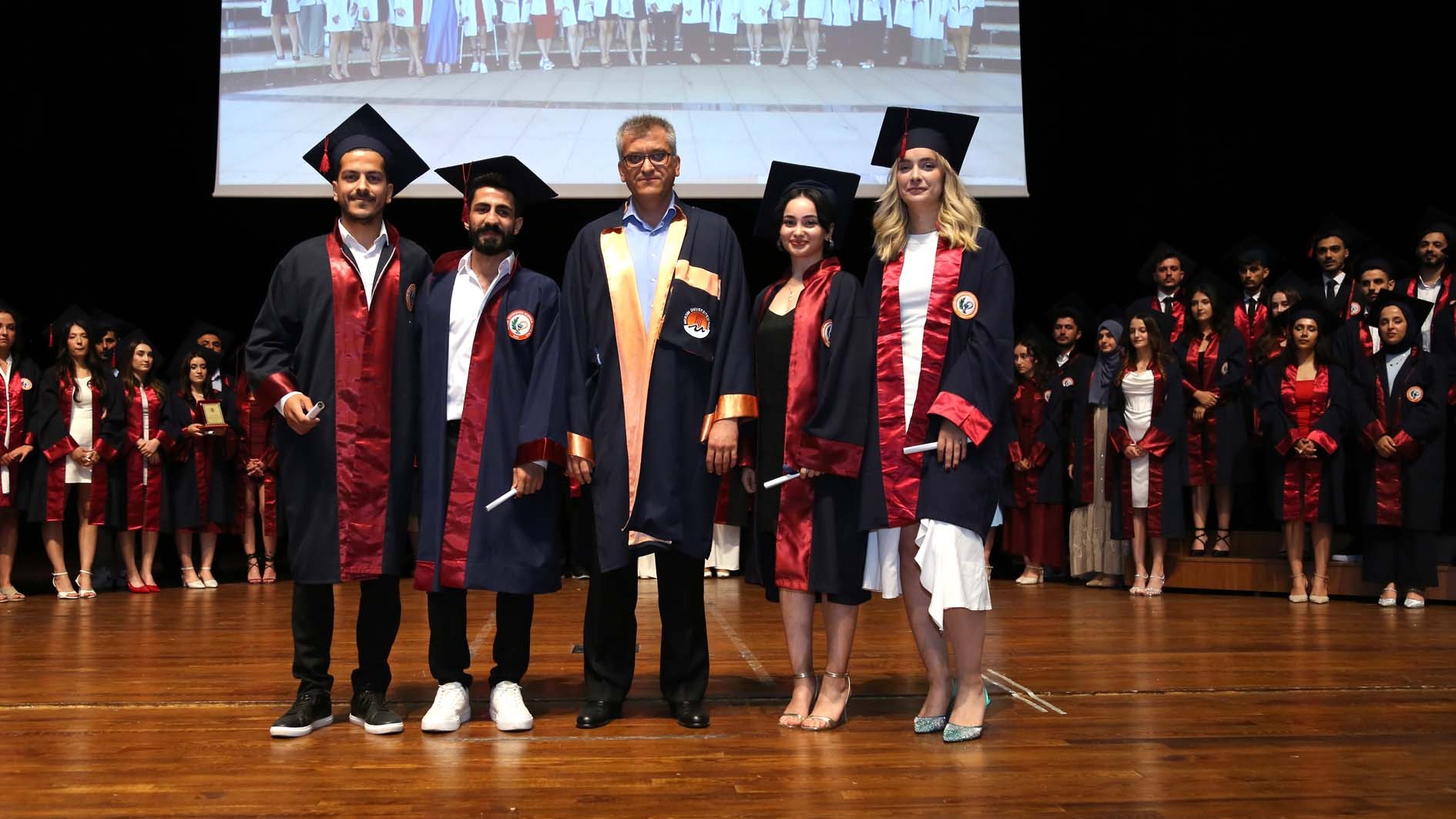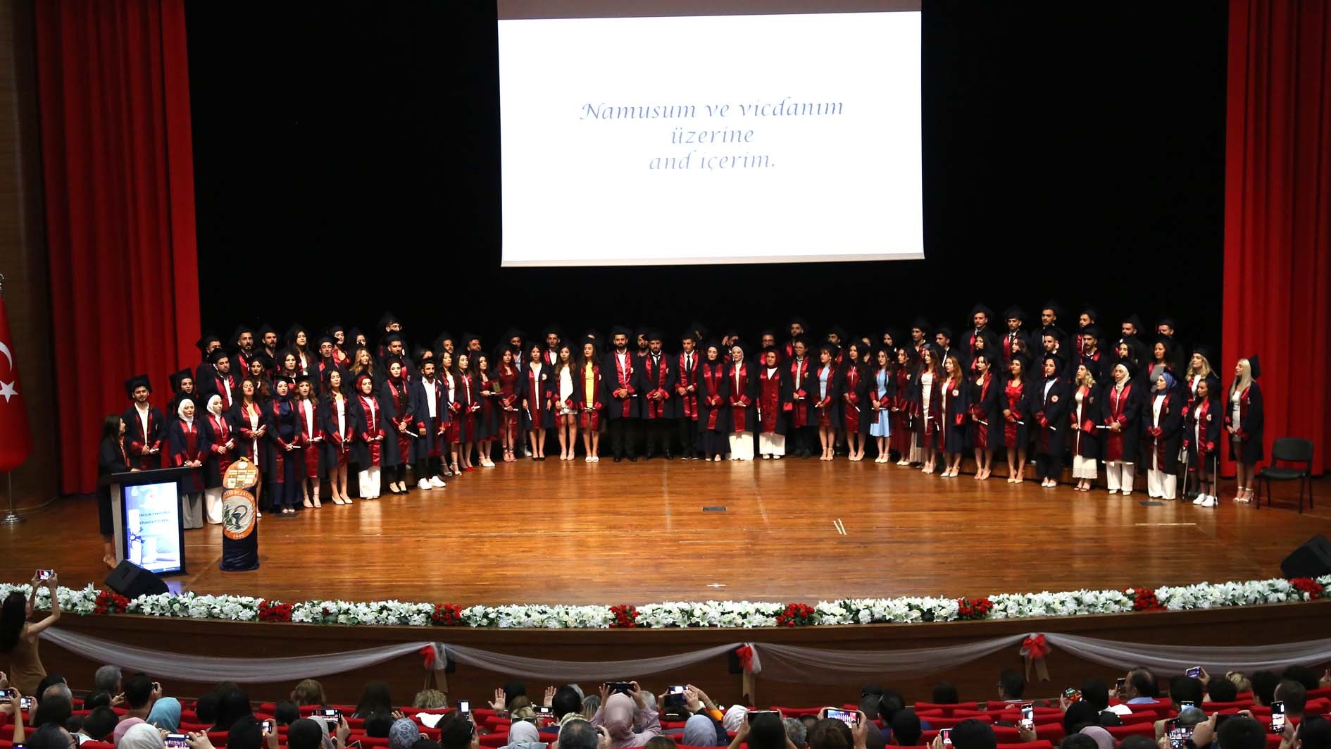 Saygı duruşu ve İstiklâl Marşı’nın okunmasıyla başlayan tören; Eczacılık Fakültesi öğrencilerimizin gerçekleştirdiği müzik dinletisi ile devam etti. Ardından mezun öğrencilerimizin beş yıl boyunca yaşadıklarını aktaran video gösterimi gerçekleştirildi.