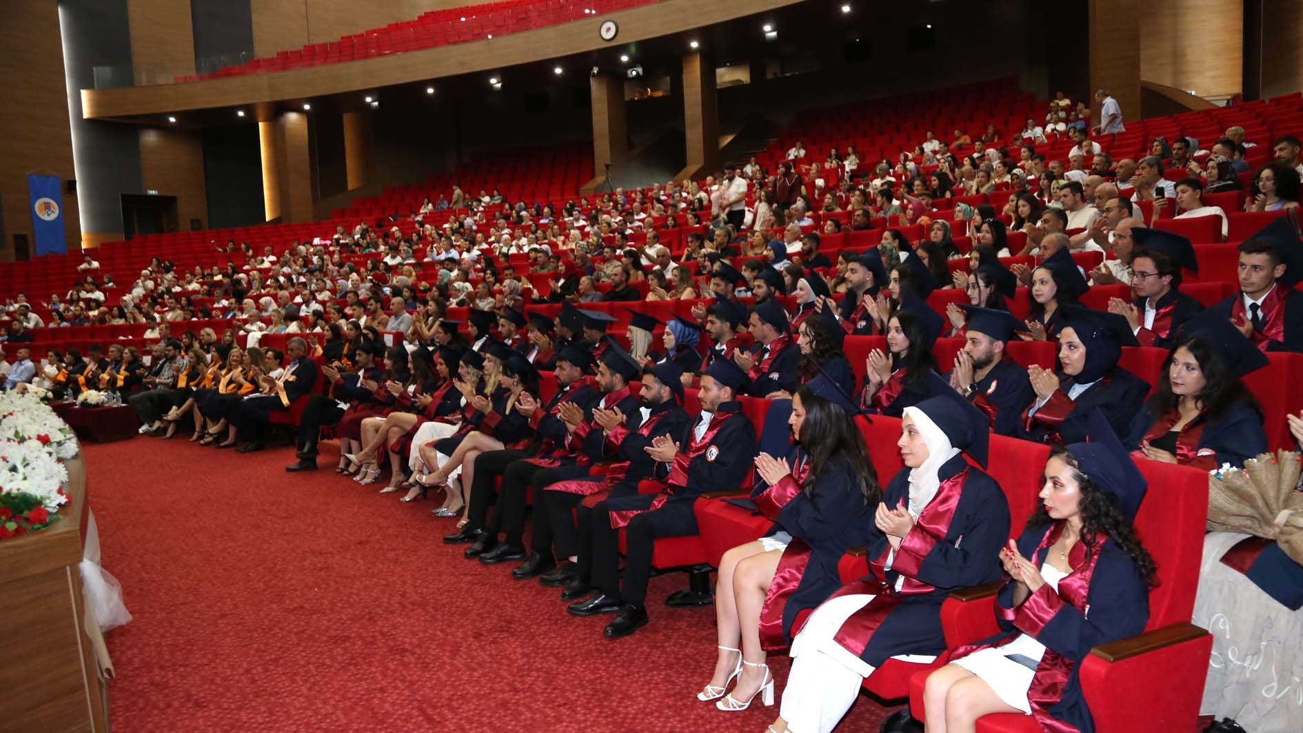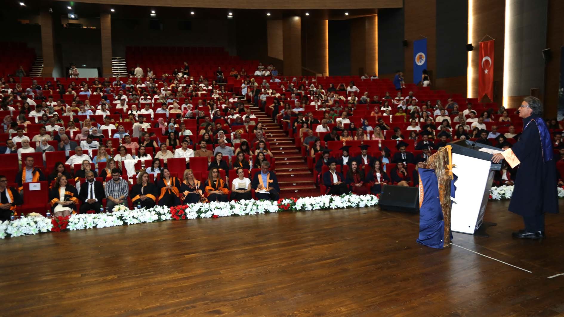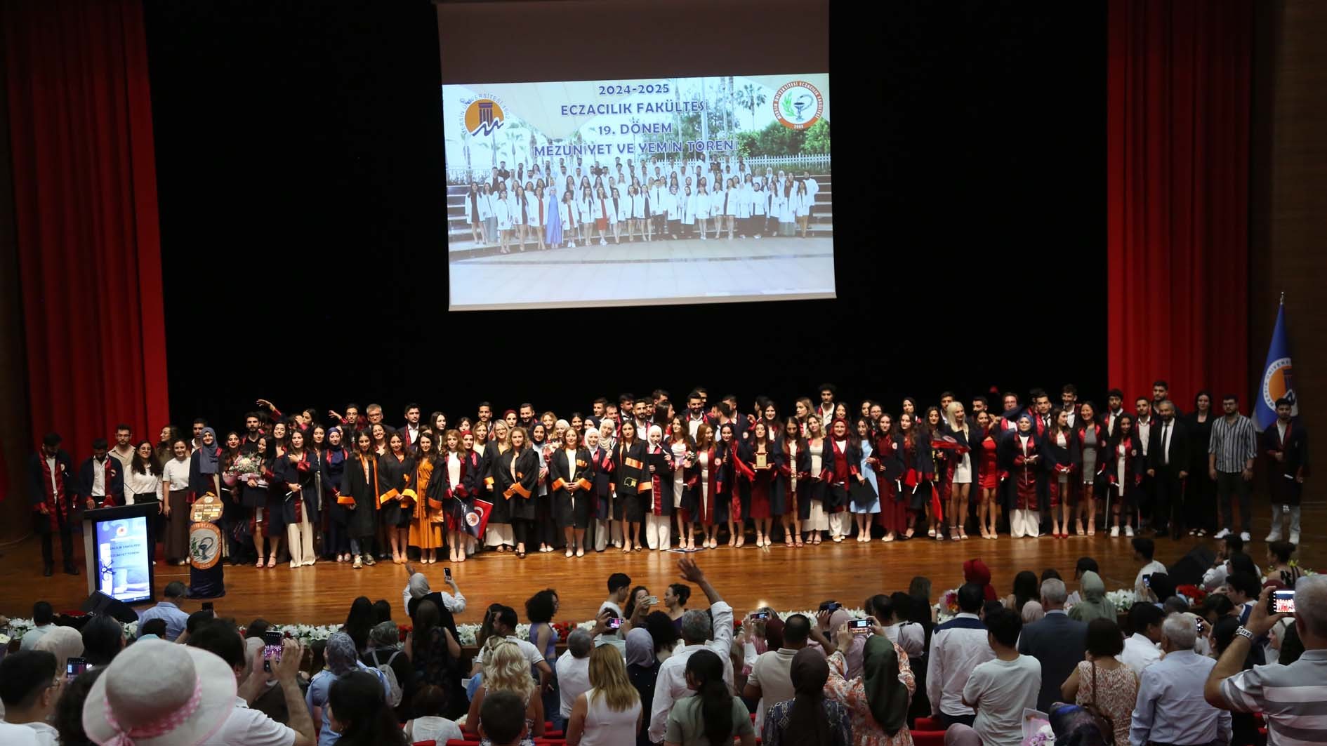 25 Haziran Çarşamba günü Üniversitemiz Akdeniz Kültür Merkezi'nde gerçekleştirilen törene, Rektör Yardımcımız Prof. Dr. Ahmet Hakan Öztürk, Eczacılık Fakültesi Dekanımız Prof. Dr. Necmiye Canacankatan, Diş Hekimliği Fakültesi Dekanımız Prof. Dr. Fethi Atıl, Sağlık Bilimleri ve Hemşirelik Fakültesi Dekanımız Prof. Dr. Duygu Vefikuluçay Yılmaz, 25. Bölge Mersin Eczacı Odası Genel Sekreteri Ecz. Cemil Oktay Aslan, Güney Ecza Kooperatifi Yönetim Kurulu Üyesi Ecz. Yesemin Emre, İdari ve Mali İşler Daire Başkanımız Osman Nuri Ramazan, öğretim elemanlarımız, idari personelimiz, mezunlarımız ve yakınları katıldı.