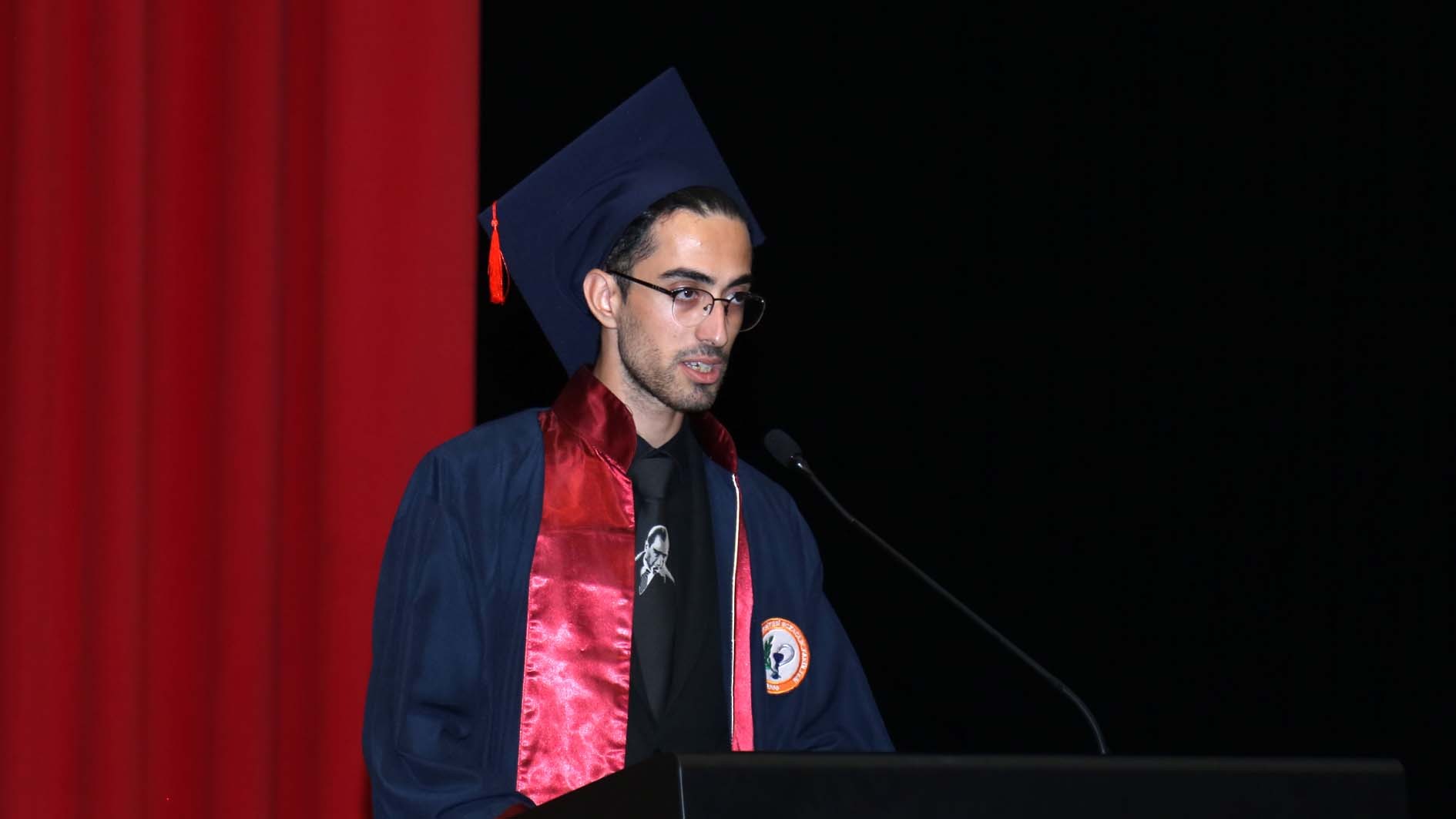2023-2024 Eğitim Öğretim Yılı dönem birincisi Ecz. Şerif Ali Güngör ve beşinci sınıf temsilcisi Ecz. Şehmuz Atız ise, gerçekleştirdikleri konuşmada kutsal bir mesleği gerçekleştirecekleri için çok mutlu olduklarını ve kendilerine her türlü desteği sağlayan başta aileler olmak üzere öğretim elemanlarımıza teşekkürlerini ilettiler.