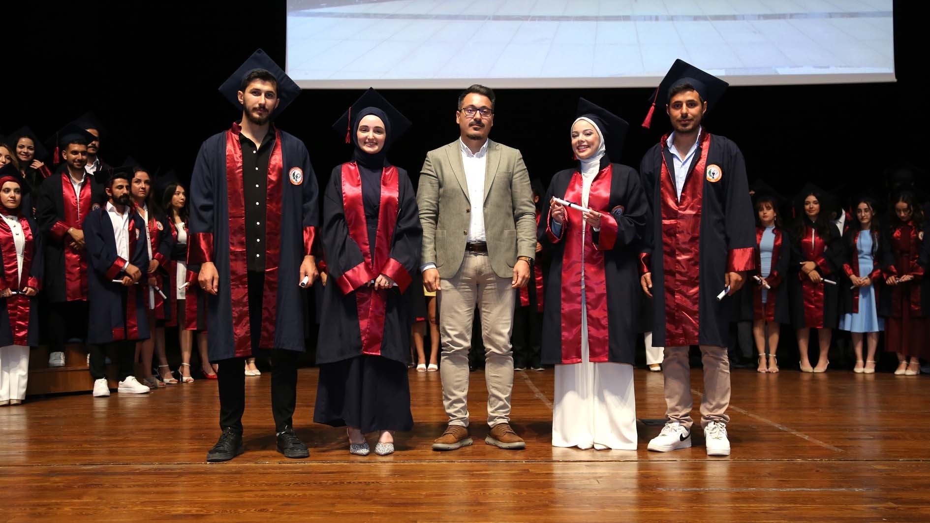 Tören, mezunlarımızın keplerini havaya atarak mezuniyet sevincini yaşamalarının ardından sona erdi.