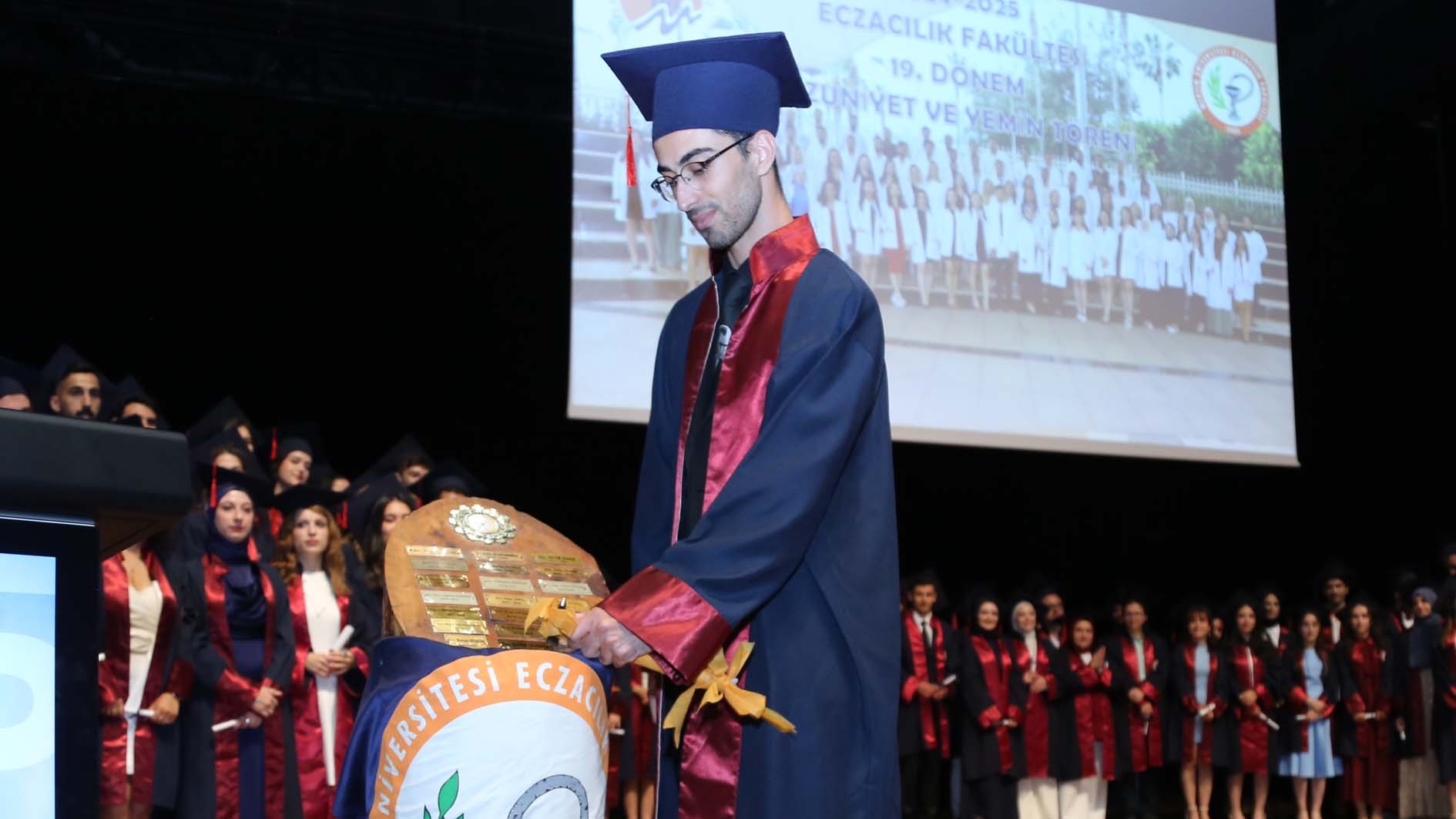 Ardından 19. dönem mezunları adına yaş kütüğe dönem plakası, fakülte birincisi Ecz. Şerif Ali Güngör tarafından çakıldı.