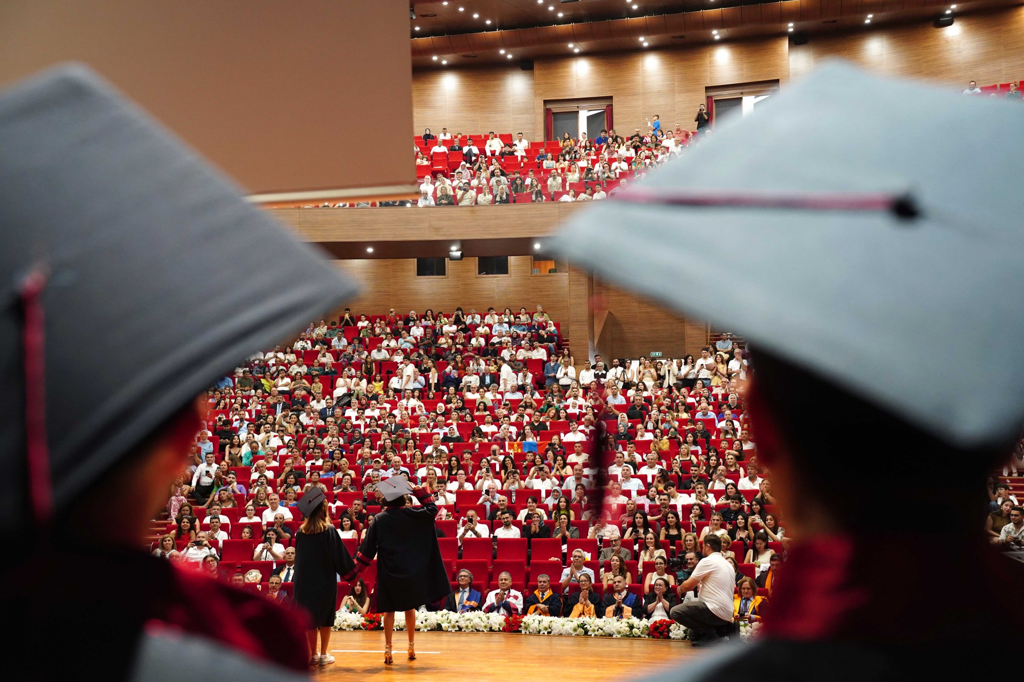 Temsili diplomalarını alan mezunlarımız, 10. Yıl Marşı eşliğinde keplerini atarak mezun olmanın gururunu, arkadaşları ve aileleriyle birlikte yaşadılar.