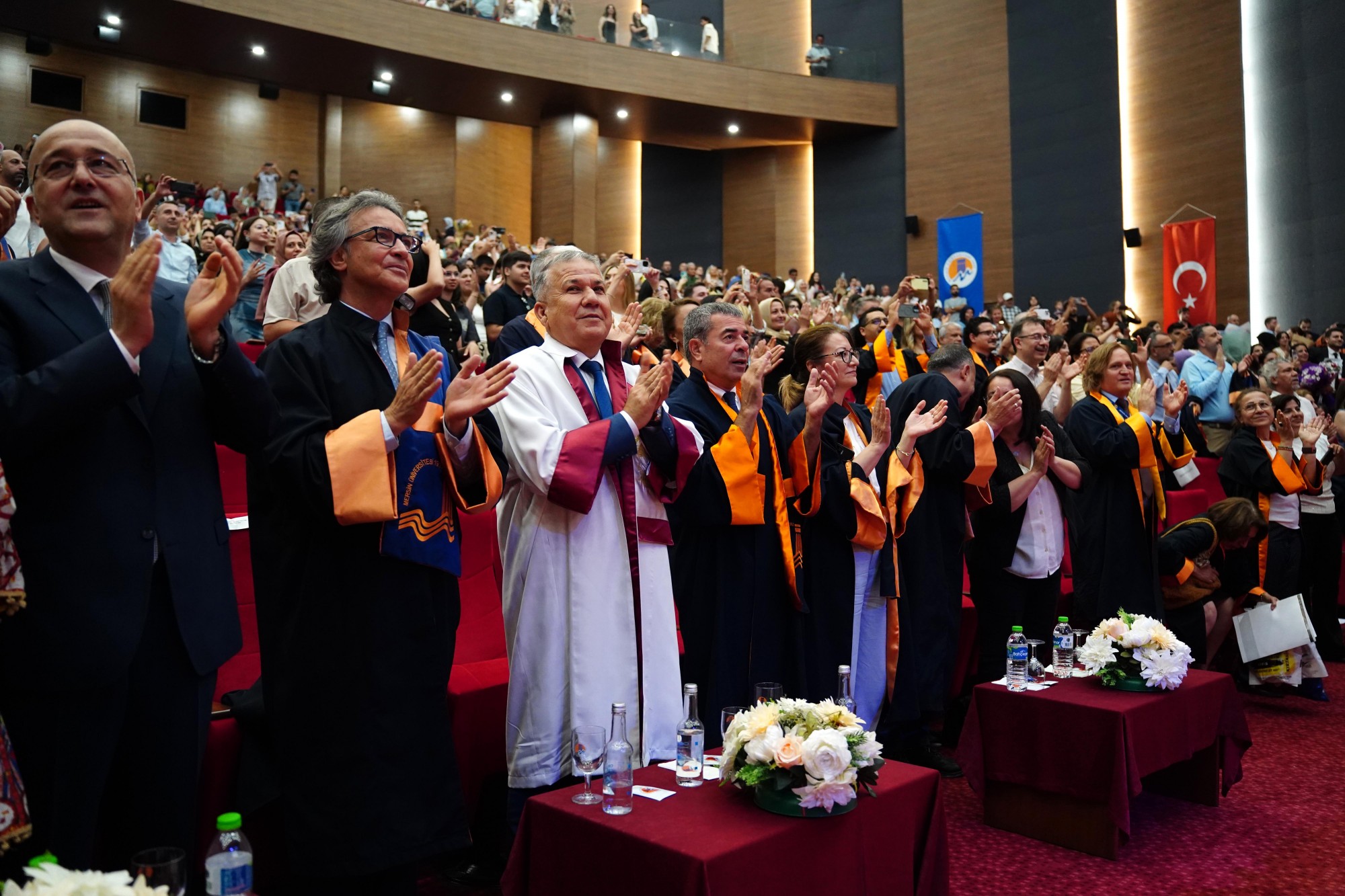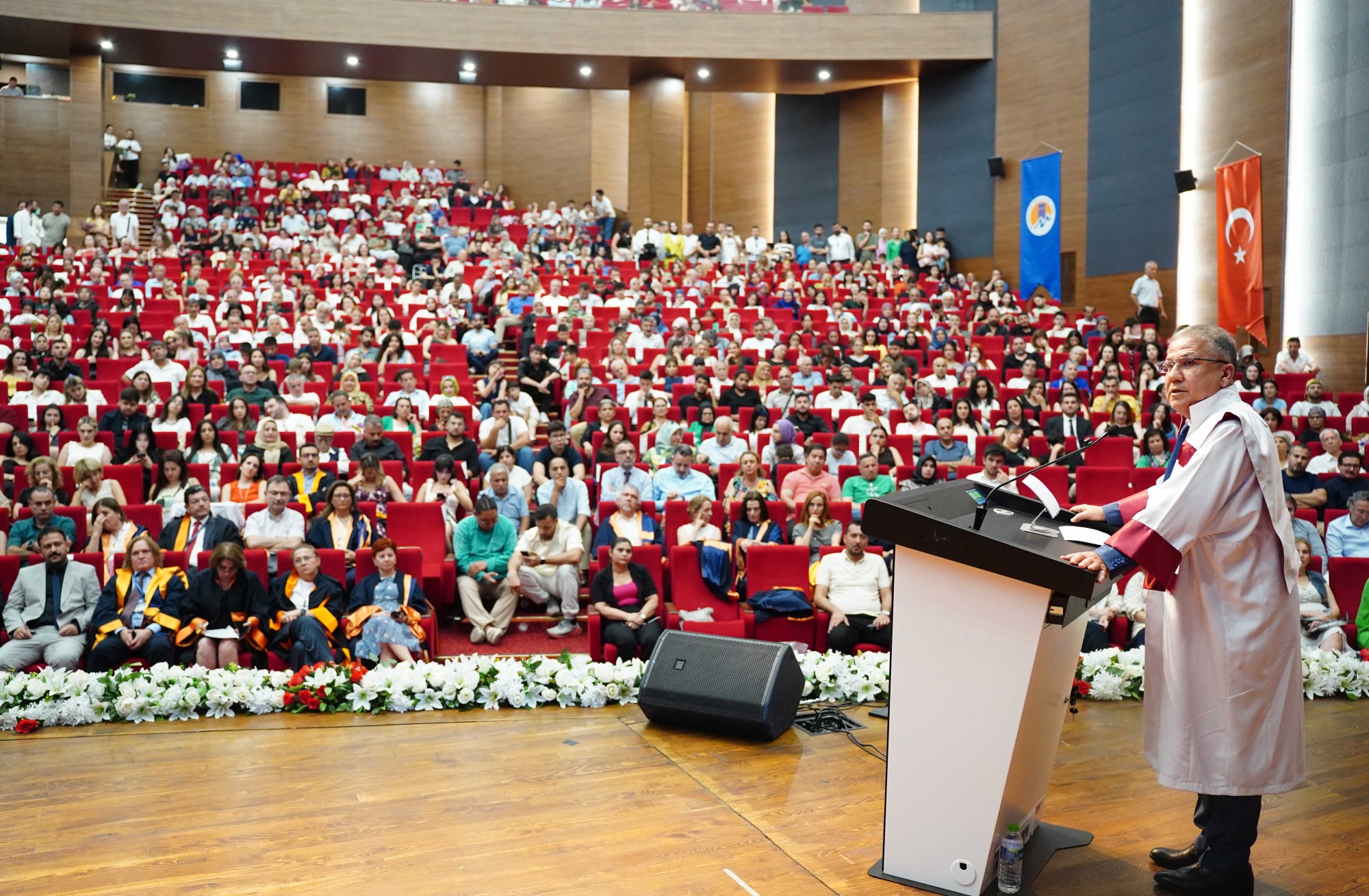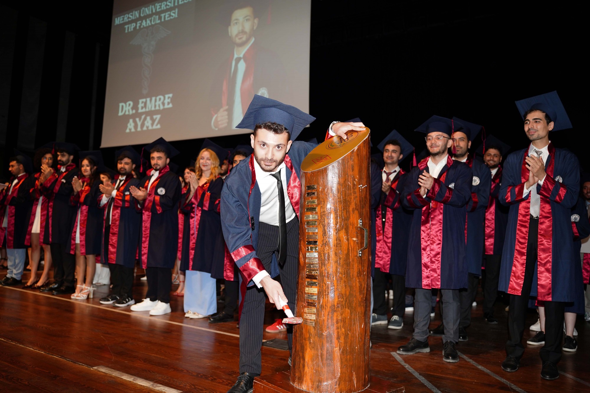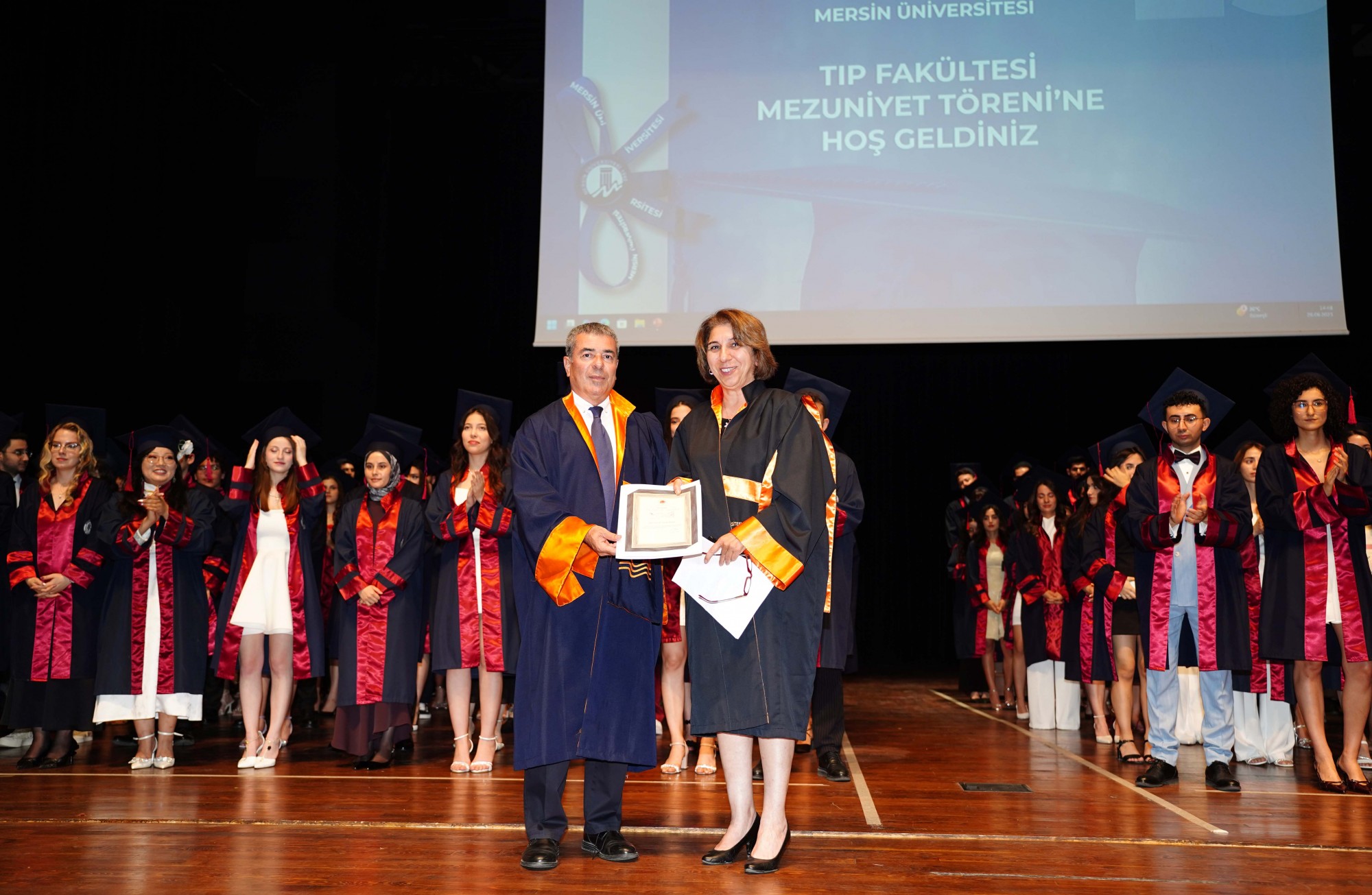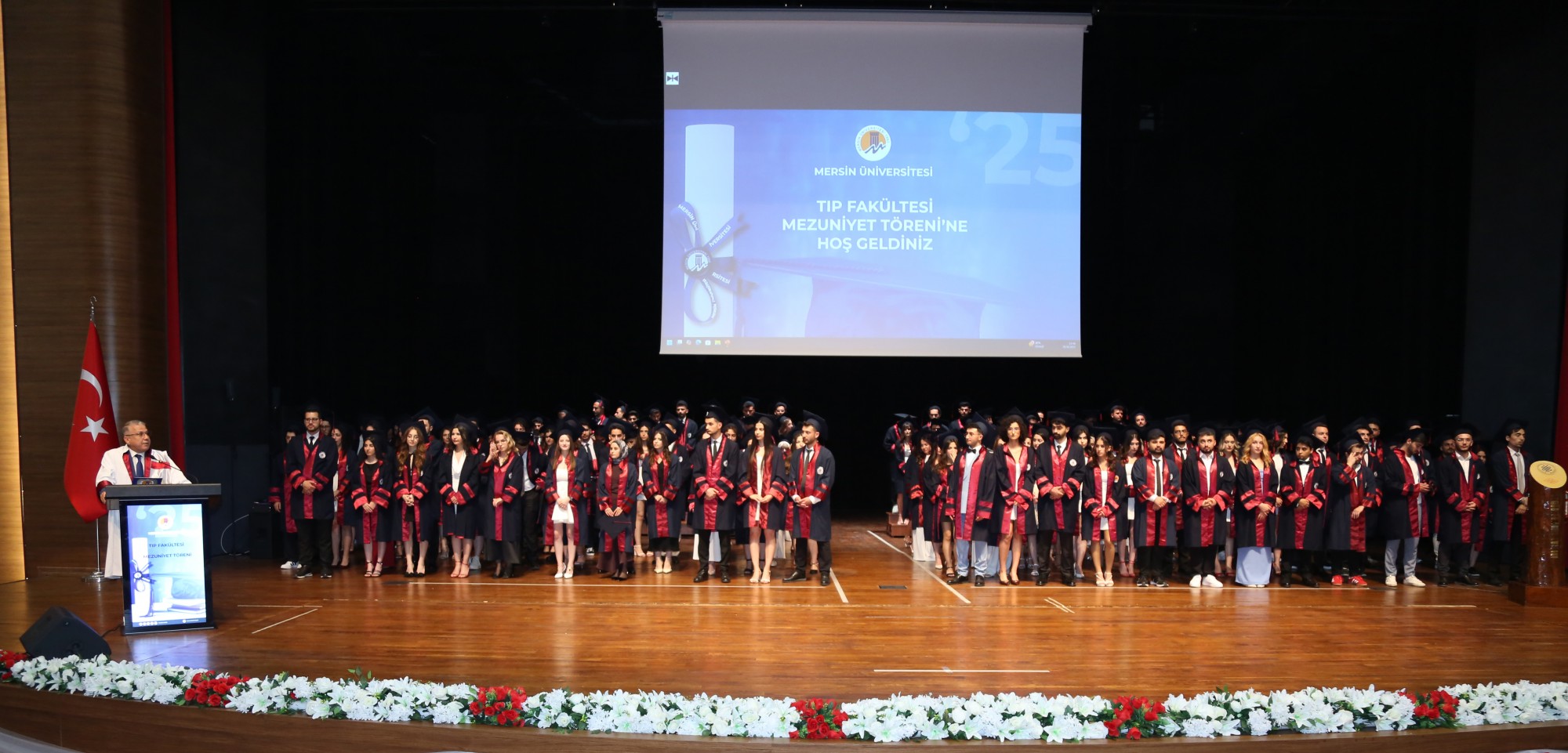 Velilerimize ve akademisyenlerimize teşekkür ettikten sonra mezunlarımıza seslenen Rektörümüz Prof. Dr. Erol Yaşar, “Bu aşamaya gelene kadar birçok zorlu yoldan geçtiniz. Bugün ise işte bu zorlu günlerin karşılığını alıyorsunuz ve Üniversitemizden birer hekim olarak mezun oluyorsunuz. Sevgili öğrencilerim, sizin ikinci yuvanız olan Mersin Üniversitesi’nin kapısı sizlere her zaman açık olacak. Mezun olmakla bizlerden ve bu yuvadan ayrılmıyorsunuz. Sevgili gençler, sizlerle gurur duyuyoruz. Sizler; yaşadığınız topluma duyarlı, araştıran, merhametli, hasta ve yakınlarıyla iyi iletişim kurabilen, etik değerleri özümsemiş nitelikli birer hekim olarak mezun oluyorsunuz. Gittiğiniz her yerde Mersin Üniversitesi’ni de temsil ettiğinizi asla unutmayın. Atatürk'ün ülkeyi muasır medeniyet seviyesinin üzerine çıkarma hedefi doğrultusunda ilerleyin. Üniversitemizin ve hekimliğin etik değerleri yolunuza ışık tutsun. Her koşulda vicdani değerleri yüksek hekimler olunuz. Yolunuz ve bahtınız açık olsun.” dedi.