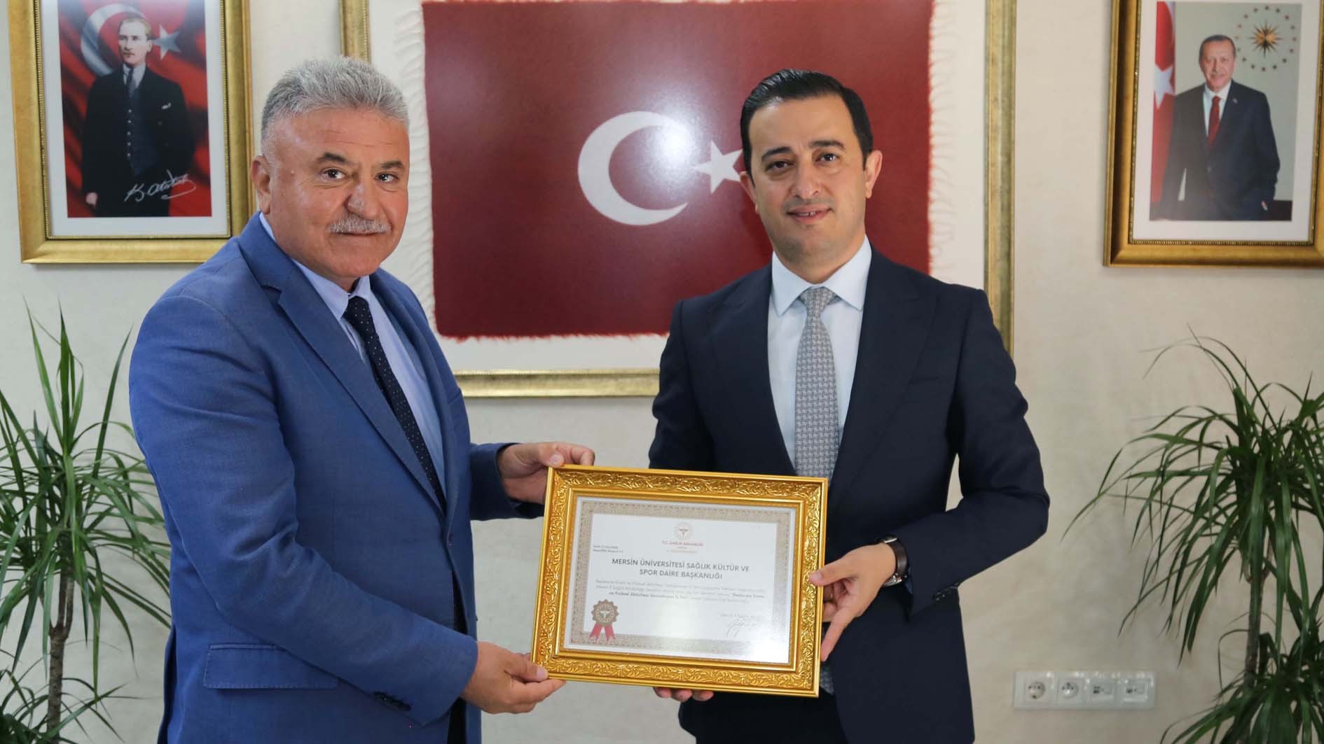 Rektörlük makamında gerçekleşen takdim töreninde duyduğu memnuniyeti dile getiren Rektörümüz Prof. Dr. Erol Yaşar, “Mersin Üniversitesi olarak yalnızca akademik başarılarıyla değil, aynı zamanda sağlıklı yaşamı teşvik eden uygulamalarımızla da örnek bir kurum olma yolunda önemli adımlar atmaktan büyük bir memnuniyet duyuyoruz. Bu kapsamda Sağlık Kültür ve Spor Daire Başkanlığımızın 'Beslenme Dostu ve Fiziksel Aktiviteyi Destekleyen İşyeri Sertifikası’nı almaya hak kazanmış olması, Üniversitemizin insan odaklı yönetim anlayışının ve sağlıklı işyeri kültürünü benimseme kararlılığının somut bir göstergesidir. Sağlık, Kültür ve Spor Daire Başkanlığımız başta olmak üzere emeği geçen tüm birimlerimizi ve personelimizi tebrik ediyorum. Bu tür uygulamaların sürdürülebilirliği ve yaygınlaştırılması, Üniversitemizin sağlıklı yaşam kültürünü kurumsal bir bilince dönüştürme hedefiyle örtüşmektedir. Bu kapsamda sağlık alanındaki duyarlılığımızı her geçen gün daha da artırarak öğrencilerimiz ve çalışanlarımız için örnek teşkil eden bir yaşam ve çalışma ortamı sunmaya devam edeceğiz.” dedi.