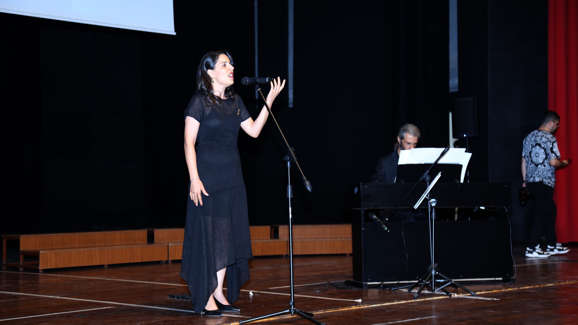 Saygı duruşu ve İstiklal Marşı’nın okunmasının ardından tören, Üniversitemiz Müzik ve Sahne Sanatları öğretim elemanları Doç. Dr. Betül Yarar Koçer ile Öğr. Gör. Ferdi Cümendür tarafından gerçekleştirilen müzik dinletisi ile devam etti.
