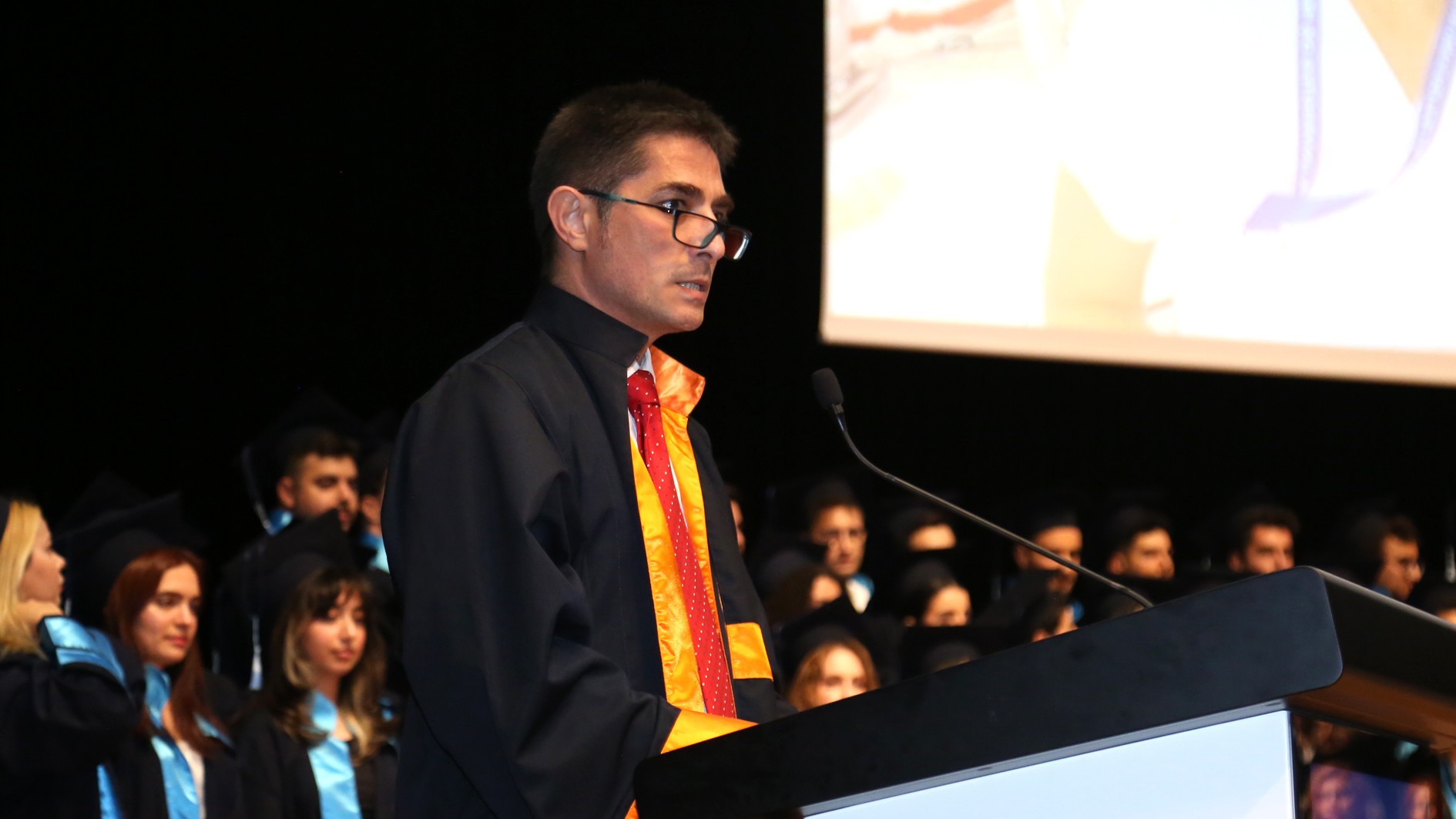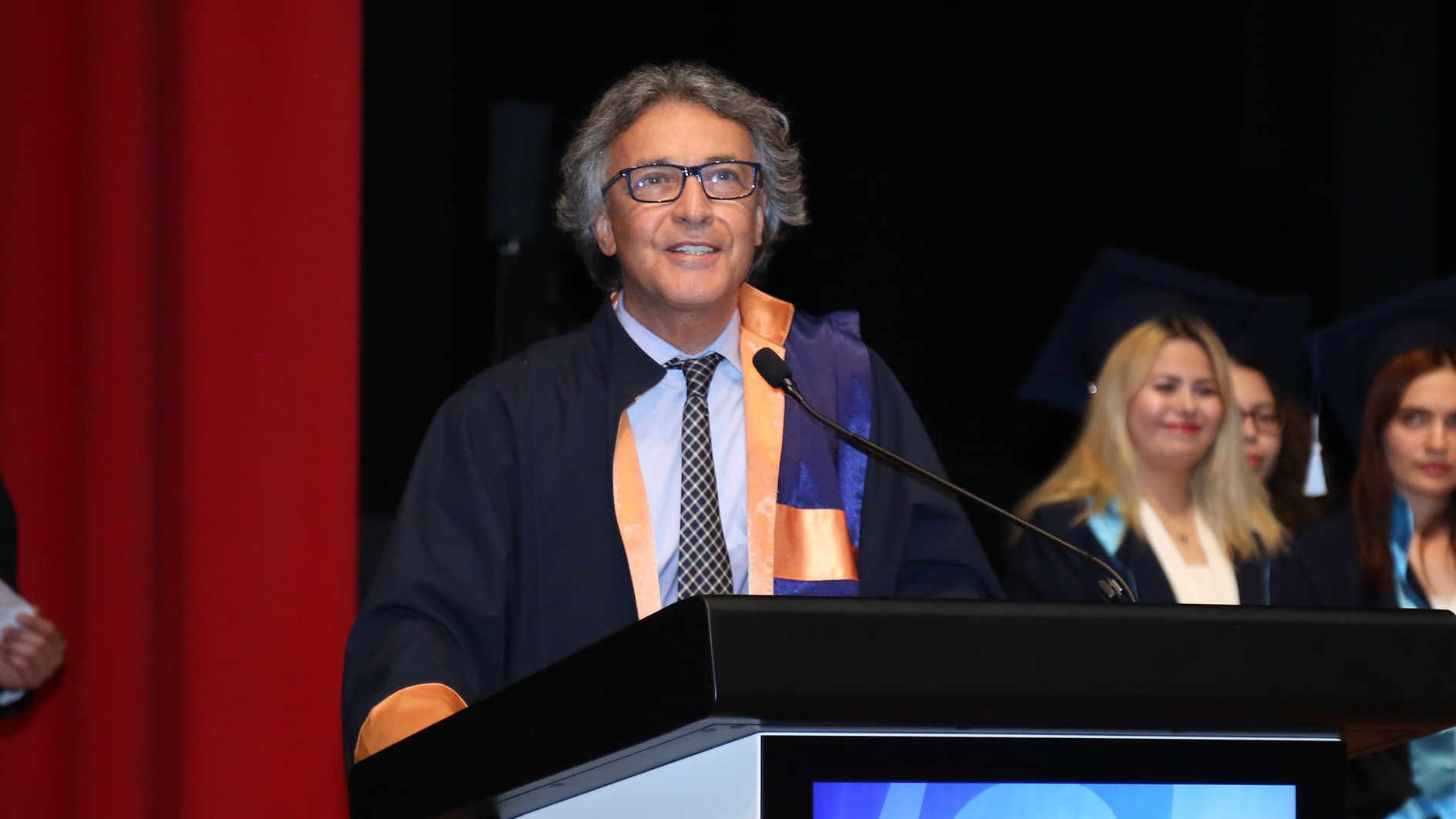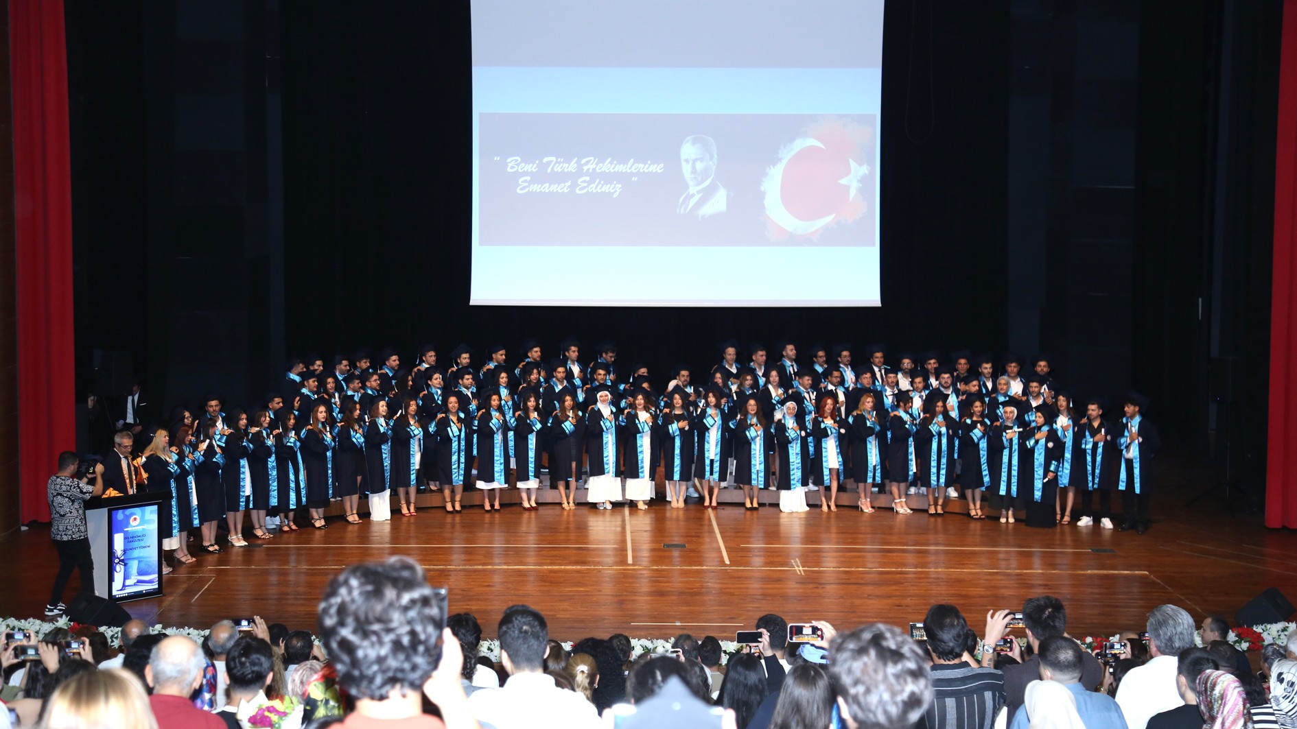 Mezunlarımıza seslenen Prof. Dr. Ahmet Hakan Öztürk, “Her biriniz bu ülke için çok önemli değerlersiniz. Sizlerin bu hizmeti en iyi şekilde yerine getireceğinizden hiçbir kuşkum yok. İnsanları, özellikle bir sağlık sorunu olduğunda, öncelikli olarak şefkate, ilgiye, dokunulmaya, dinlenilmeye ihtiyaçları olduğunu unutmayın. Hastalarınıza, insani değerlerimizle, en başta sevgiyle yaklaşmadığınız zaman tedaviniz eksik kalacaktır. Bu yüzden çevrenizdeki insanlara karşı içinizde daima nezaket besleyin. Hastalarınıza iyi davranın. Gülümseyin ve gülümsemenin gücünü kullanın. Tam bir tedavi için sadece bilgi ve ileri teknolojinin yetmeyeceğini unutmayın. Tedavinin sırrı hastaya saygı ile başlar, sevgi ile tamamlanır.” ifadelerini kullandı.