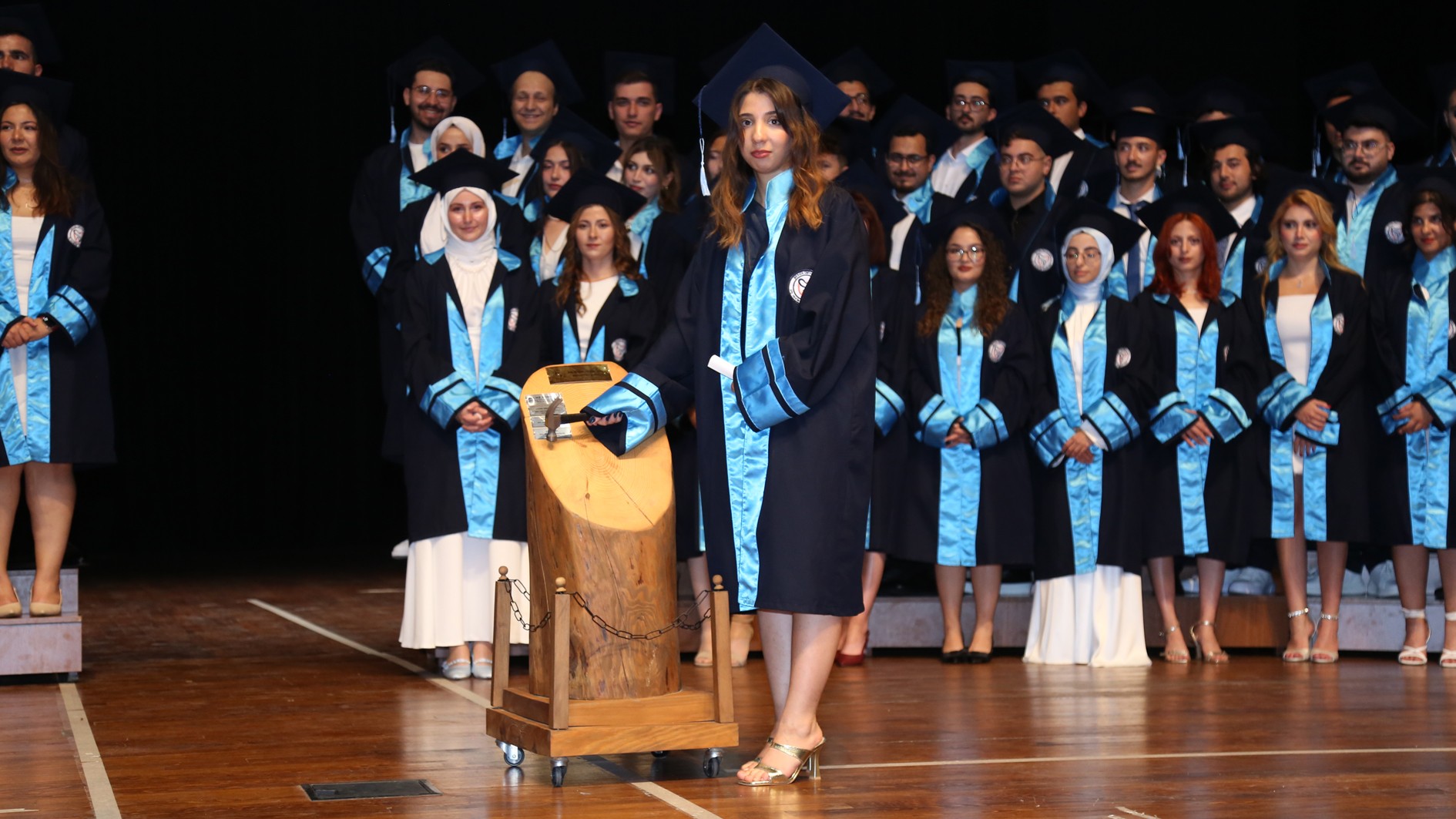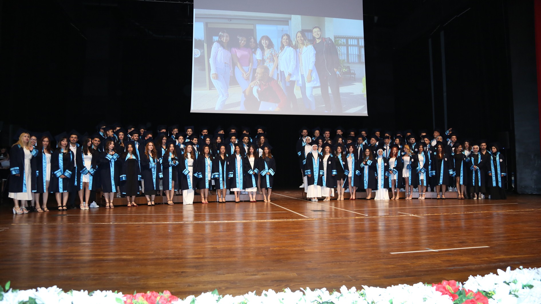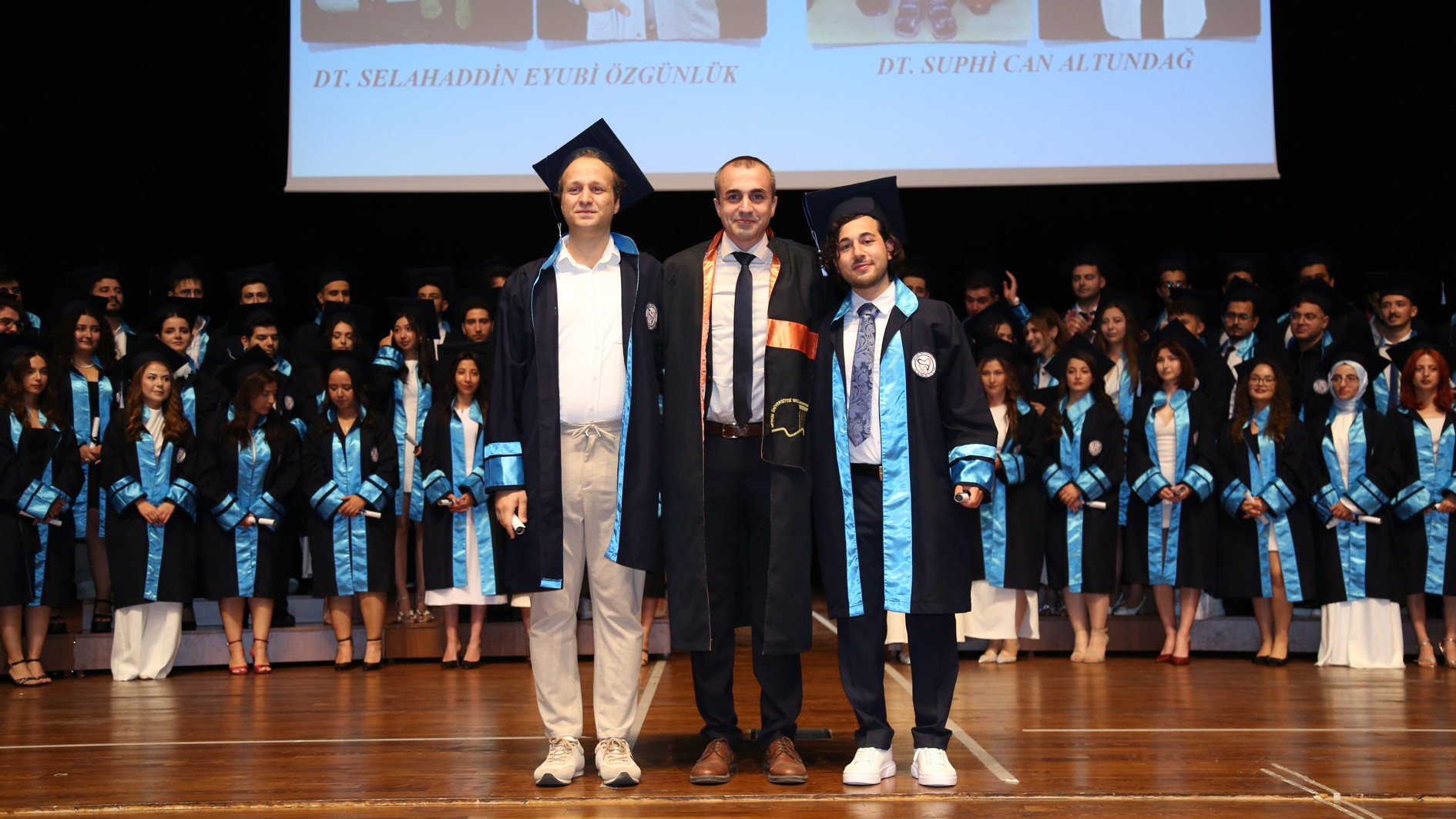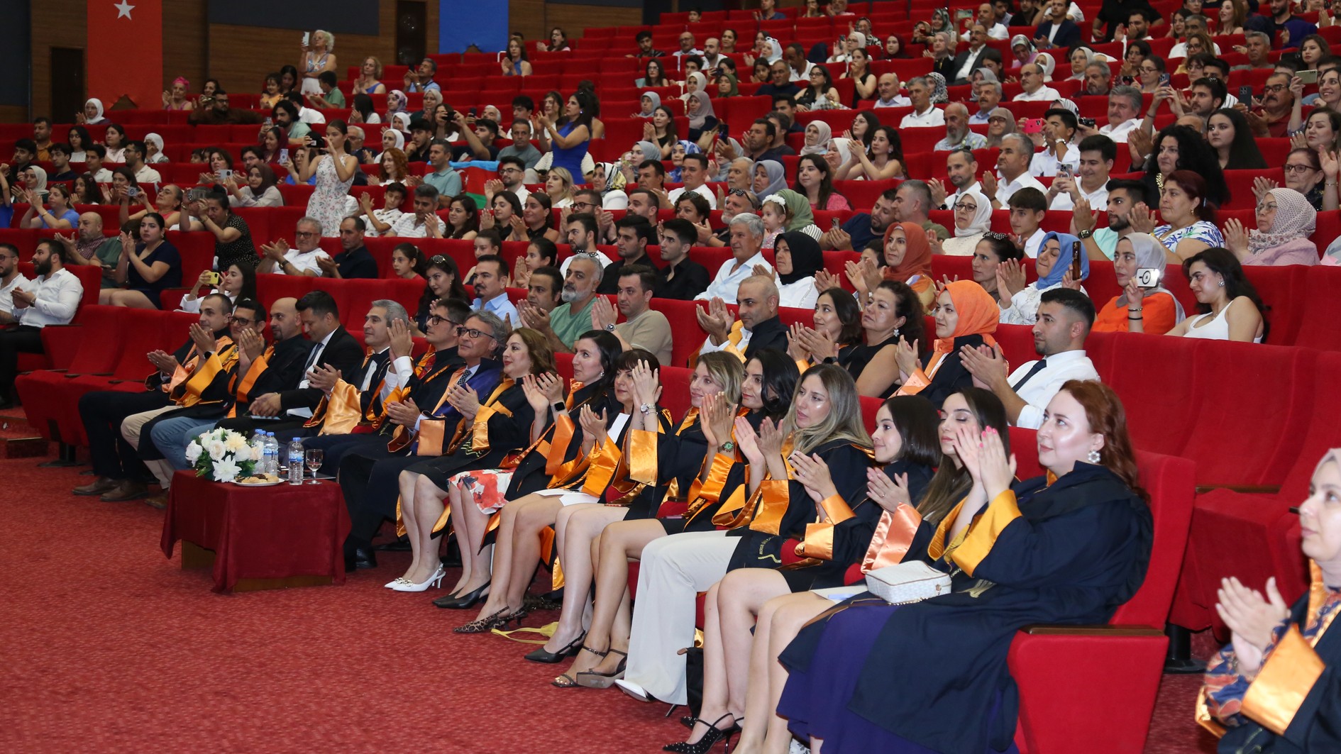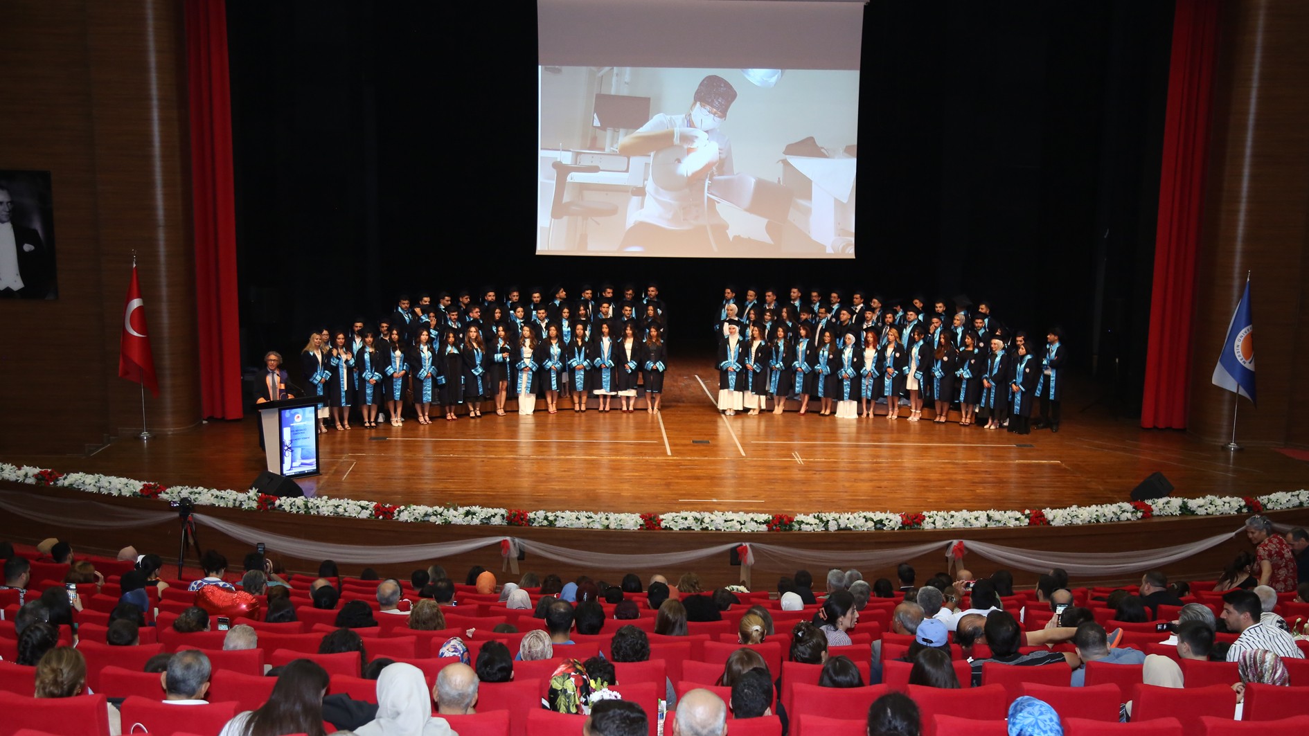 9 Temmuz Çarşamba günü Üniversitemiz Akdeniz Kültür Merkezinde gerçekleştirilen törene Rektör Yardımcımız Prof. Dr. Ahmet Hakan Öztürk, Diş Hekimliği Fakültesi Dekanımız Prof. Dr. Fethi Atıl, Eczacılık Fakültesi Dekanımız Prof. Dr. Necmiye Canacankatan, Mersin Diş Hekimleri Odası Başkanı Dt. İlhan Karataş, öğretim elemanları, idari personel ve mezunlarımızın yakınları katıldı.