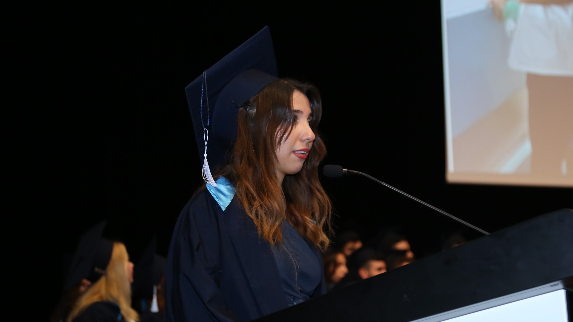 Dönem birincisi Diş Hekimi Azra Polat ise konuşmasında hayallerinin gerçek olduğunu ancak Üniversitemizden ayrıldıkları için de buruk bir sevinç yaşadıklarını söyledi. Polat konuşmasını, dereceyle mezun olmasında emekleri olan ailesine, arkadaşlarına ve hocalarına teşekkür ederek tamamladı.