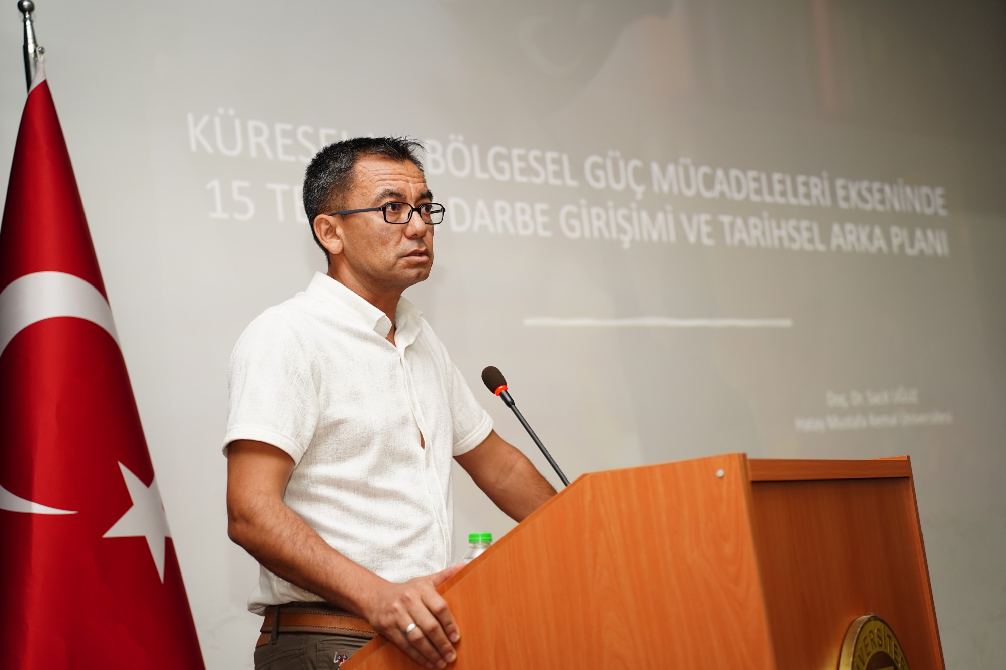TRT tarafından hazırlanan 15 Temmuz temalı kısa film gösteriminin ardından, Hatay Mustafa Kemal Üniversitesi Fen-Edebiyat Fakültesi Tarih Bölümü öğretim üyesi Doç. Dr. Sacit Uğuz tarafından “Küresel ve Bölgesel Güç Mücadeleleri Ekseninde 15 Temmuz Darbe Girişimi ve Tarihsel Arka Planı” başlıklı sunum gerçekleştirildi.