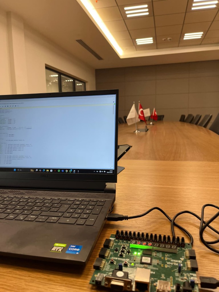 Teknolojide yerli ve özgünlüğü hedefleyen mikrodenetleyici projesi ile ön tasarım ve detaylı tasarım aşamalarını başarıyla tamamlayan takımımız; savunma sanayii başta olmak üzere, endüstriyel uygulamalarda kullanılmak üzere RISC-V mimarisine sahip yüksek performanslı bir sistem geliştirdi.