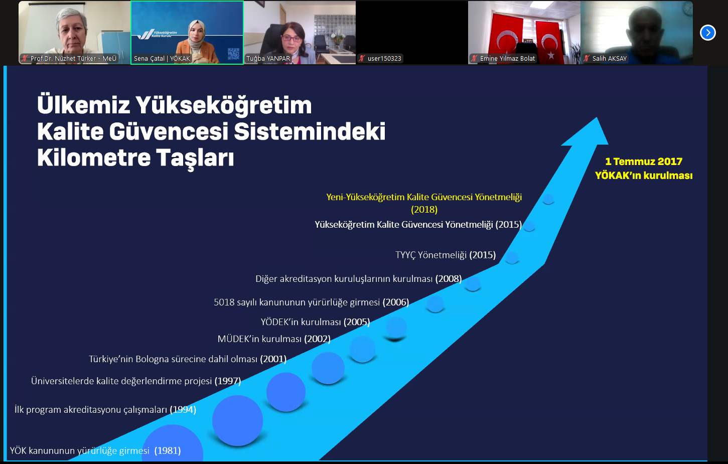 Ardından YÖKAK Akademik Uzmanı Arş. Gör. Sena Çatal tarafından “Yükseköğretim Kurumlarında İç Kalite Güvencesi Sistemi” konulu bir sunum gerçekleştirildi. Seminer, katılımcılardan gelen soruların cevaplanmasıyla sona erdi.