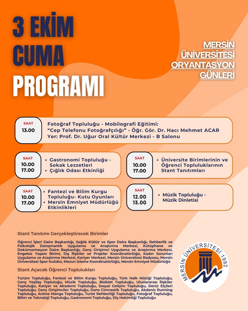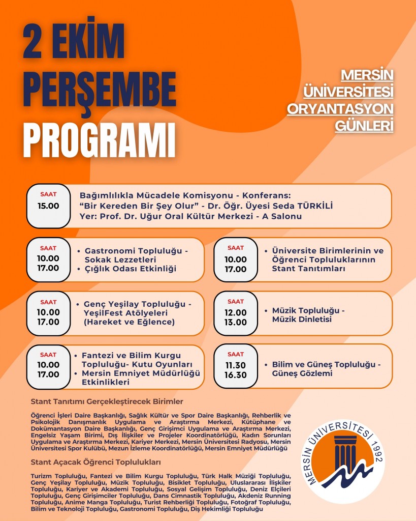 Mersin Üniversitesi 2025-2026 Eğitim Öğretim Yılı Oryantasyon Günleri