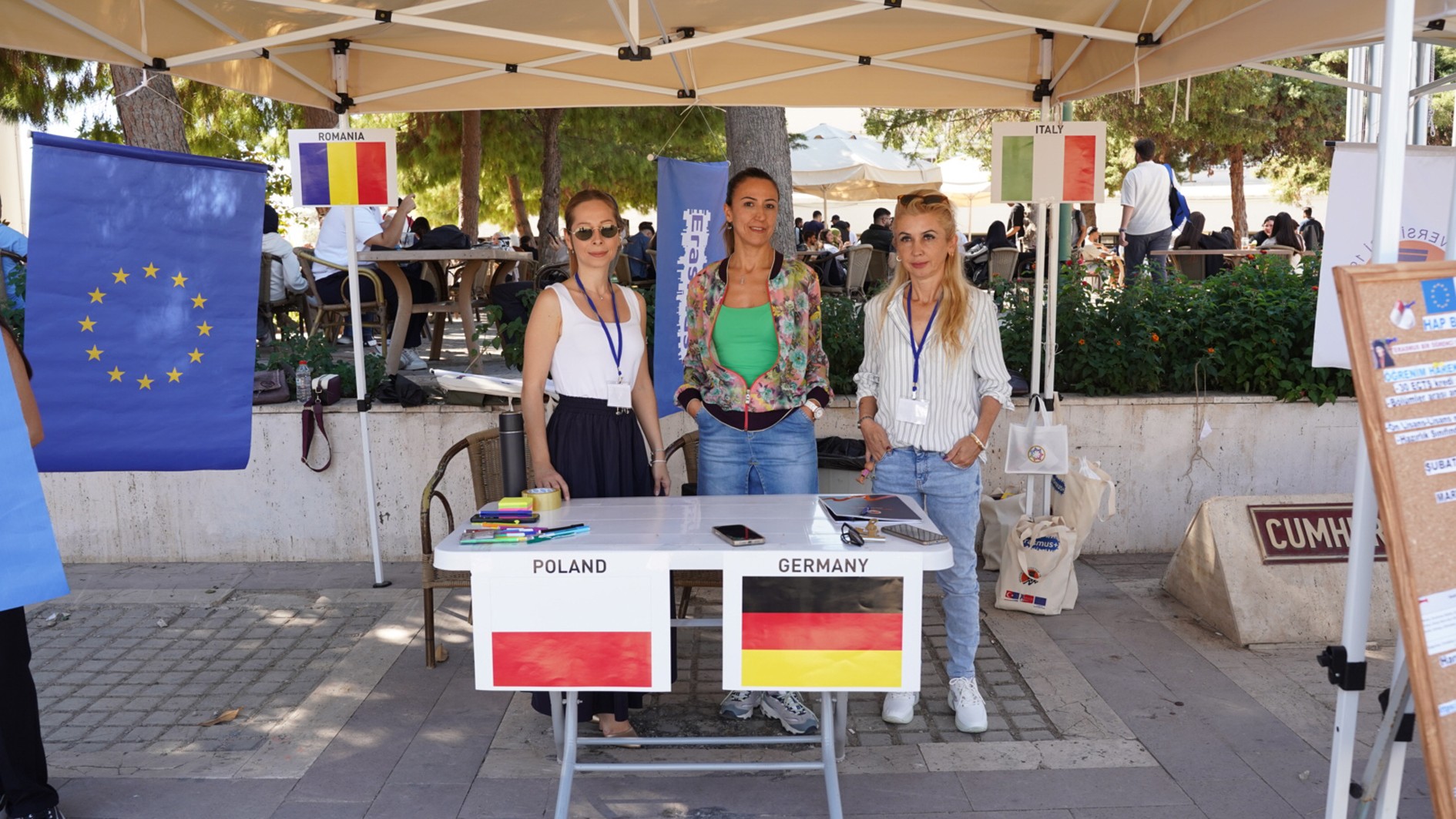 Erasmus+ programının sunduğu fırsatları tanıtmak, hareketlilik deneyimlerini paylaşmak ve öğrenciler arasında Avrupa bilincini artırmak amacıyla Cumhuriyet Alanımızda gerçekleştirilen etkinlikte; Erasmus bilgilendirmeleri, deneyim paylaşımları, müzik ve sürpriz hediyeler yer aldı.