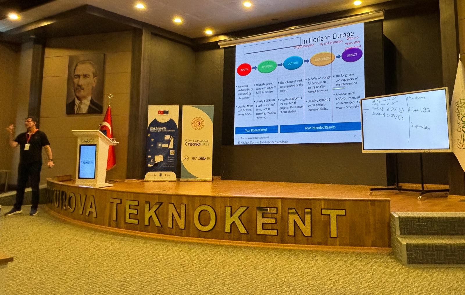 Etkinlik, TÜBİTAK AB Çerçeve Programları Ulusal Koordinasyon Ofisi tarafından, Çukurova Üniversitesi iş birliğiyle Çukurova Teknokent yerleşkesinde düzenlendi. Etkinliğe Rektör Yardımcımız Prof. Dr. Ahmet Hakan Öztürk, Su Ürünleri Fakültesi Dekanı ve TTO Akademik Birim Sorumlusu Prof. Dr. M. Tahir Alp, TTO Danışma Kurulu Üyesi Abdi Kurt, TTO yönetim kurulu üyesi Prof. Dr. Yasemin Yuyucu Karabulut, TTO öğretim elemanı Öğr. Gör. Dr. Aynur Gürbüz katıldı.