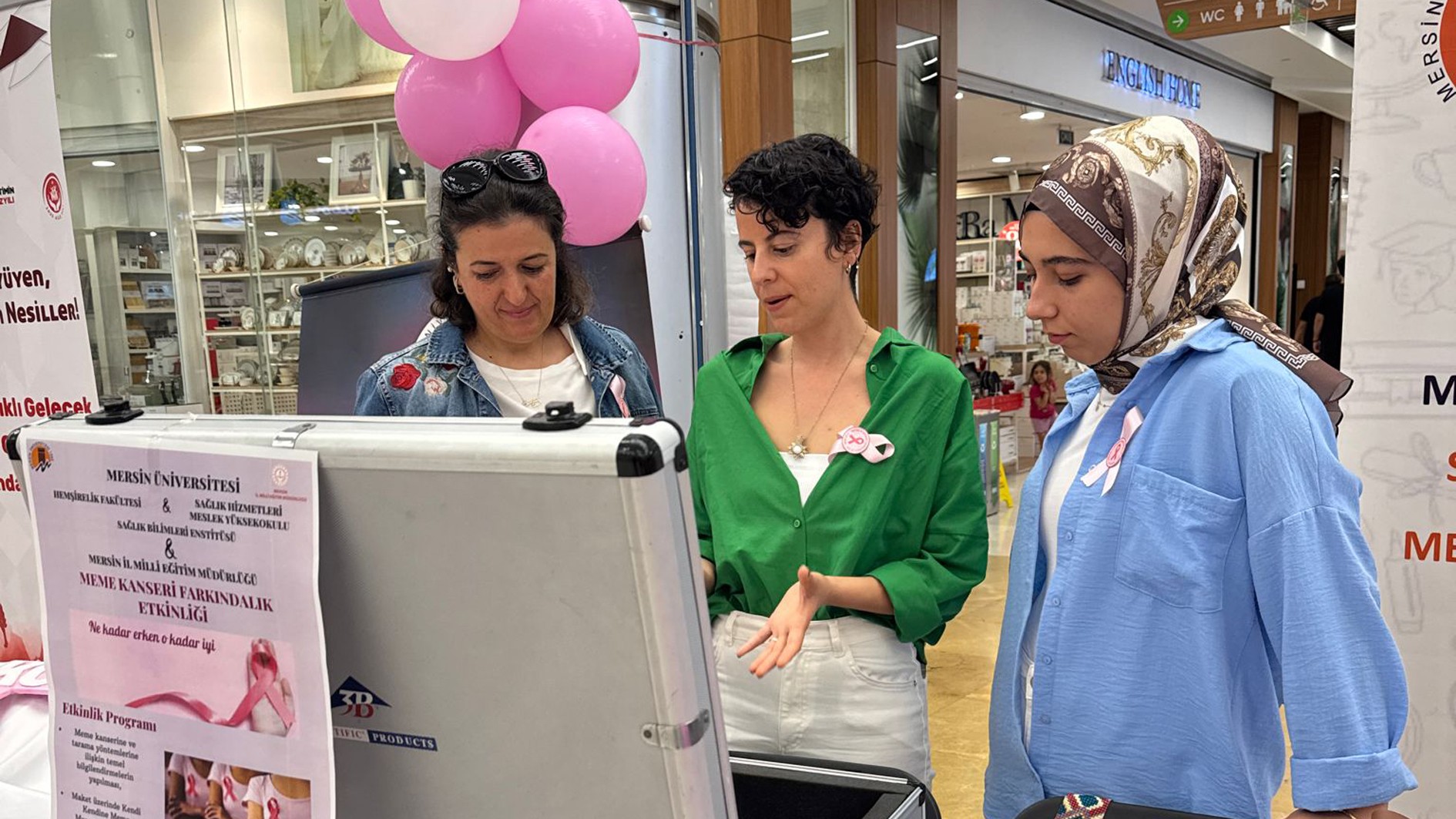 Farkındalık etkinliklerinin ilki, 4 Ekim Cumartesi günü Mersin Marina’da Hemşirelik Fakültesi ve Sağlık Bilimleri Enstitüsü Hemşirelik Anabilim Dalı tarafından gerçekleştirildi. Meme kanserine dikkat çekmek amacıyla açılan stantta, öğretim elemanları ve öğrenciler halkı bilgilendirerek maket üzerinde Kendi Kendine Meme Muayenesi uygulamasını gösterdi.