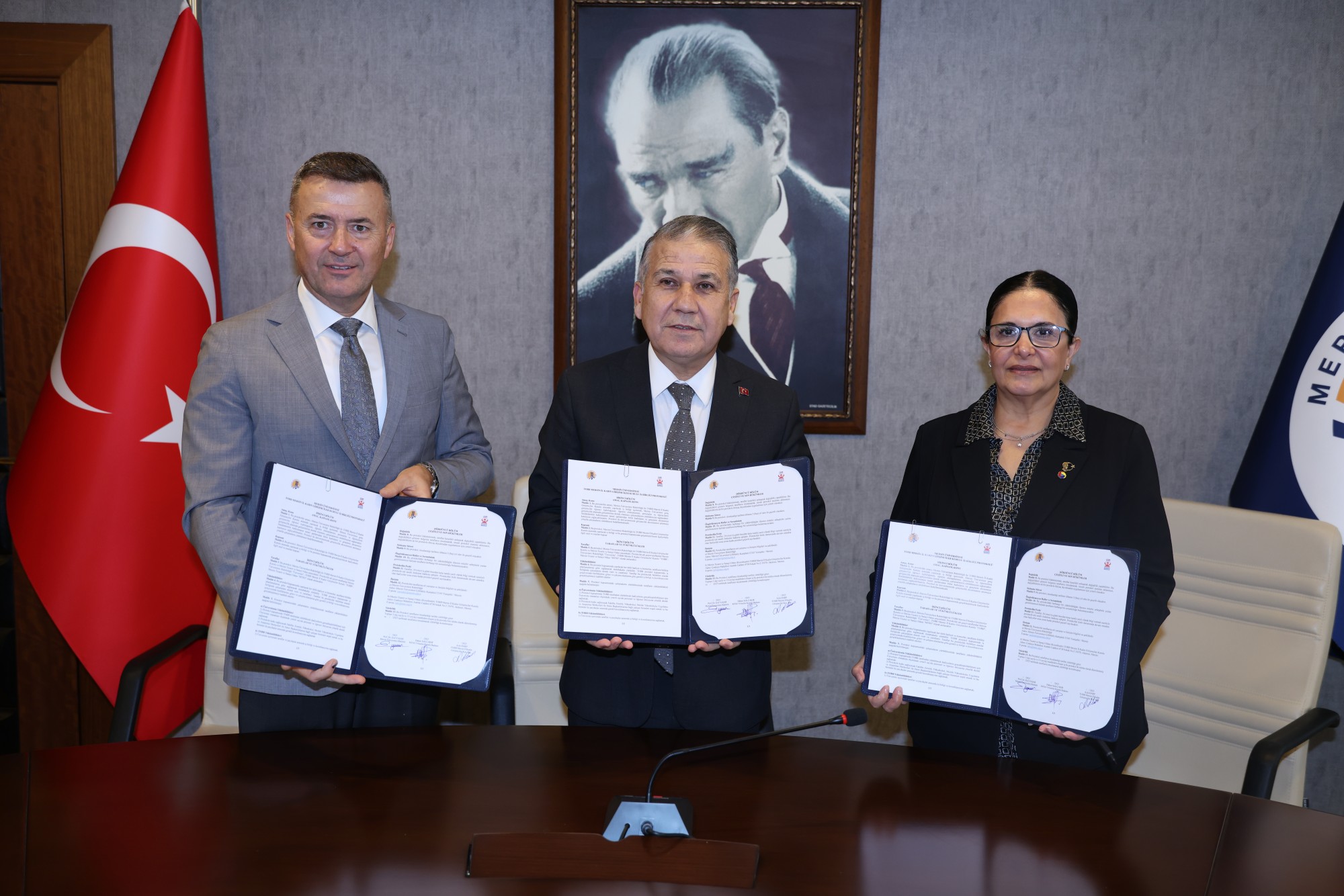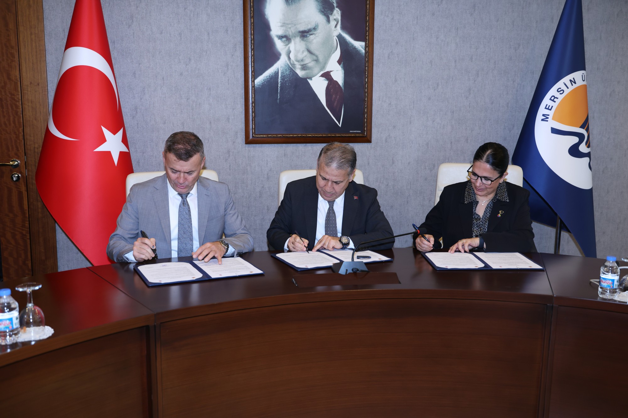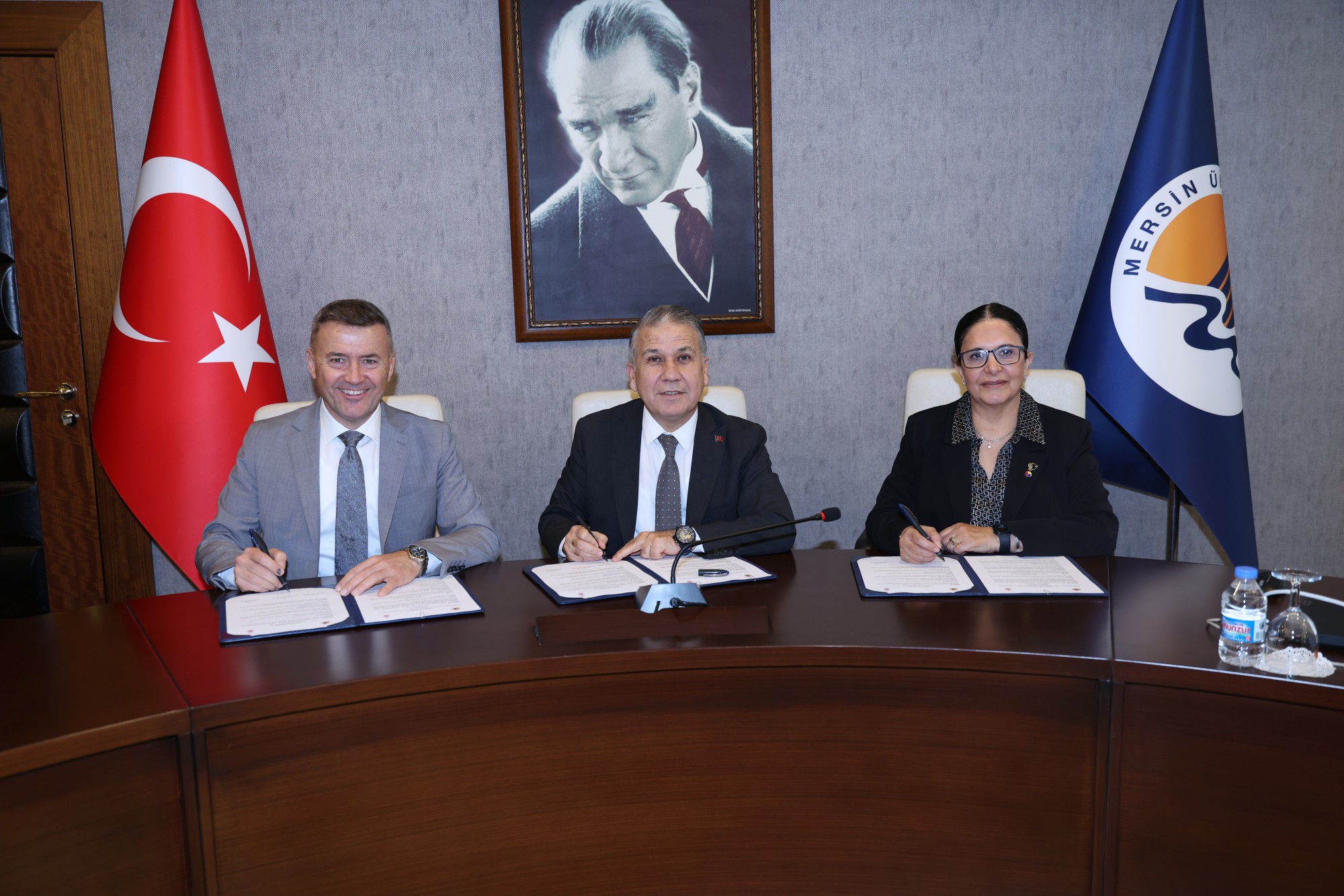 1 Aralık Pazartesi günü gerçekleştirilen törende, Üniversitemiz adına Rektörümüz Prof. Dr. Erol Yaşar, Mersin Ticaret ve Sanayi Odası (MTSO) adına Yönetim Kurulu Başkanı Hakan Sefa Çakır ve TOBB Mersin İl Kadın Girişimciler Kurulu adına ise Başkan Ayla Harp, iş birliği protokolüne imza attı.