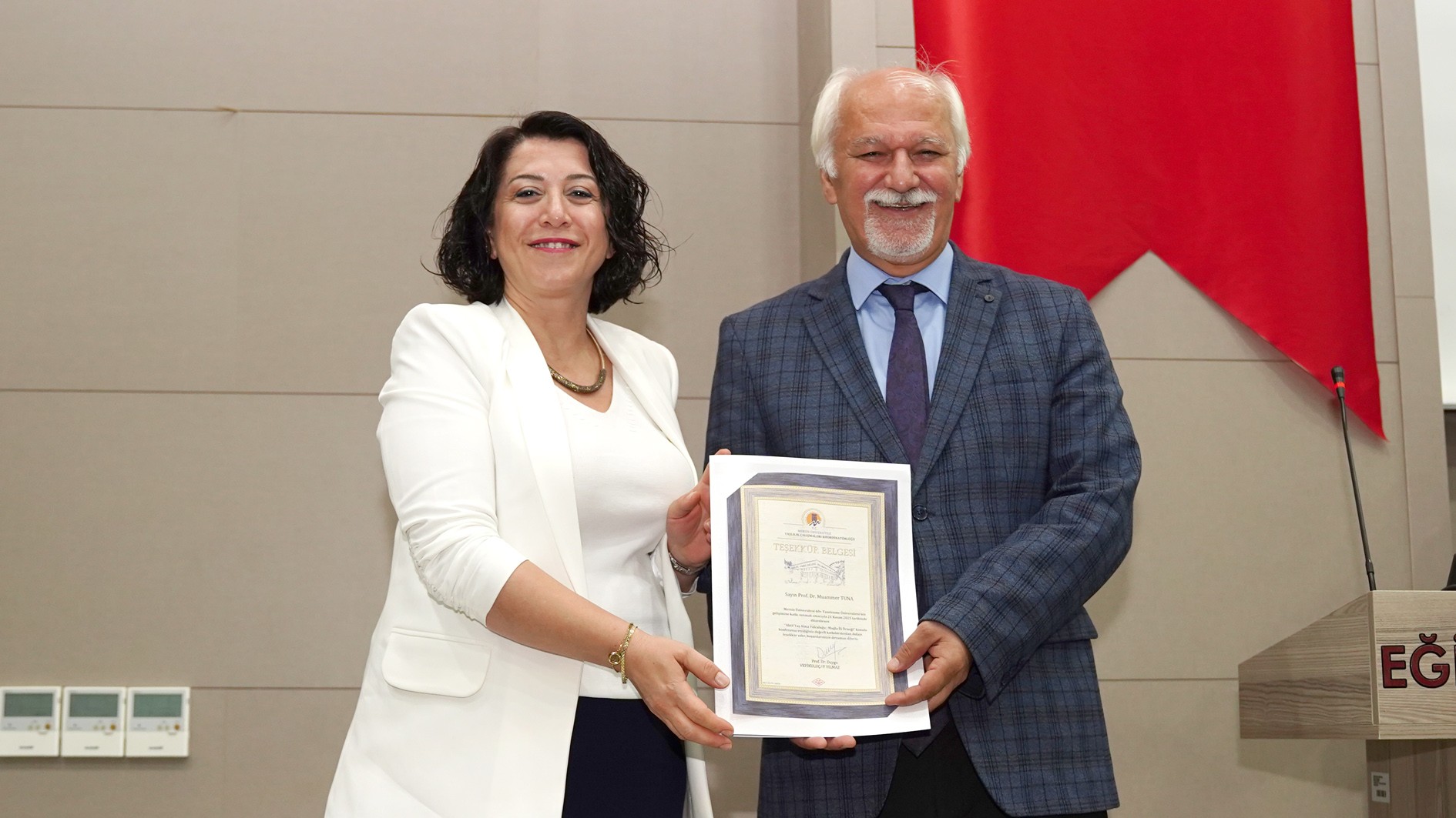 Etkinlik sonunda Üniversitemiz Yaşlılık Çalışmaları Koordinatörü Prof. Dr. Duygu Vefikuluçay Yılmaz tarafından Prof. Dr. Tuna’ya katkılarından dolayı teşekkür edilerek günün anısına belge takdim edildi.
