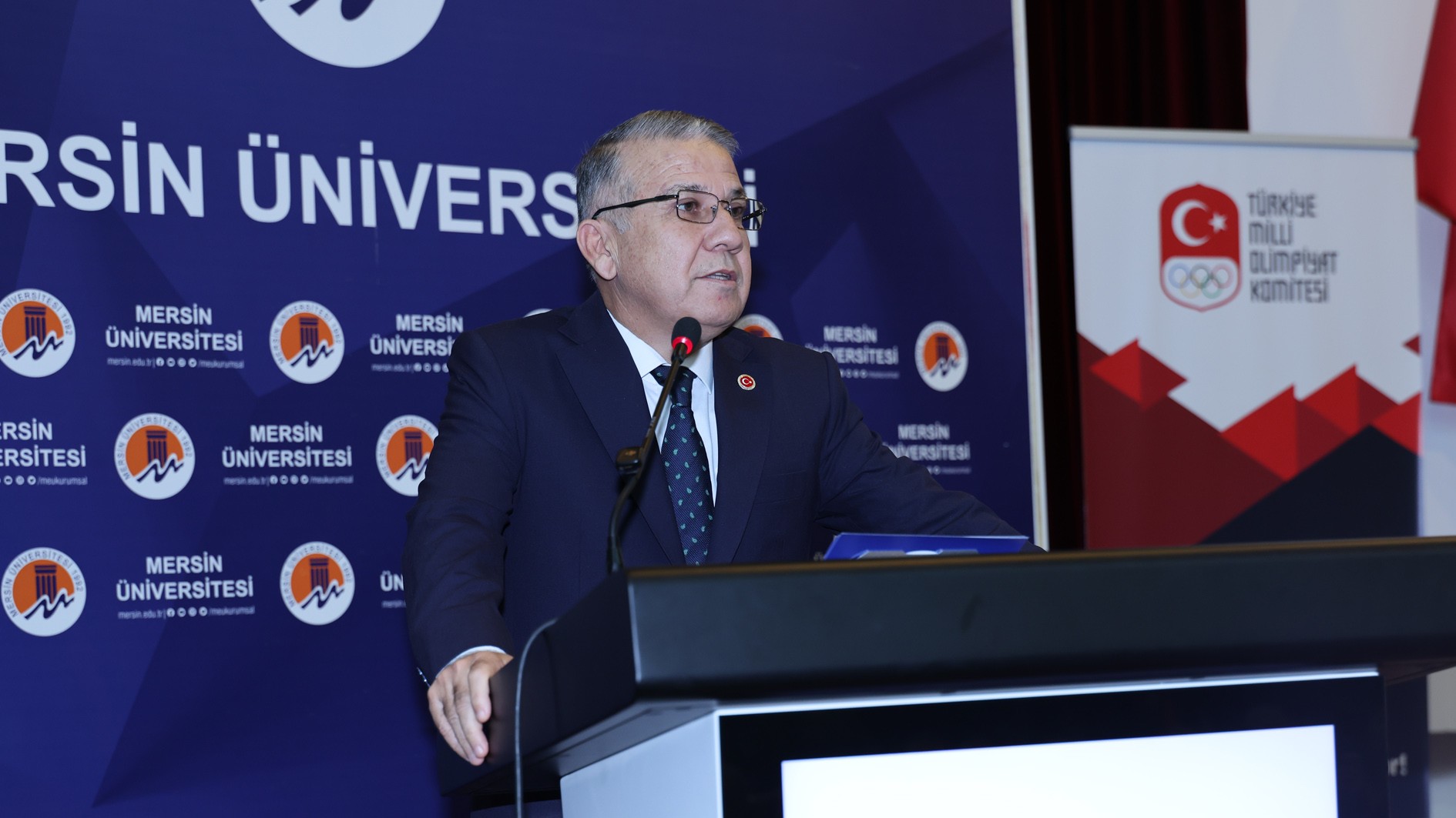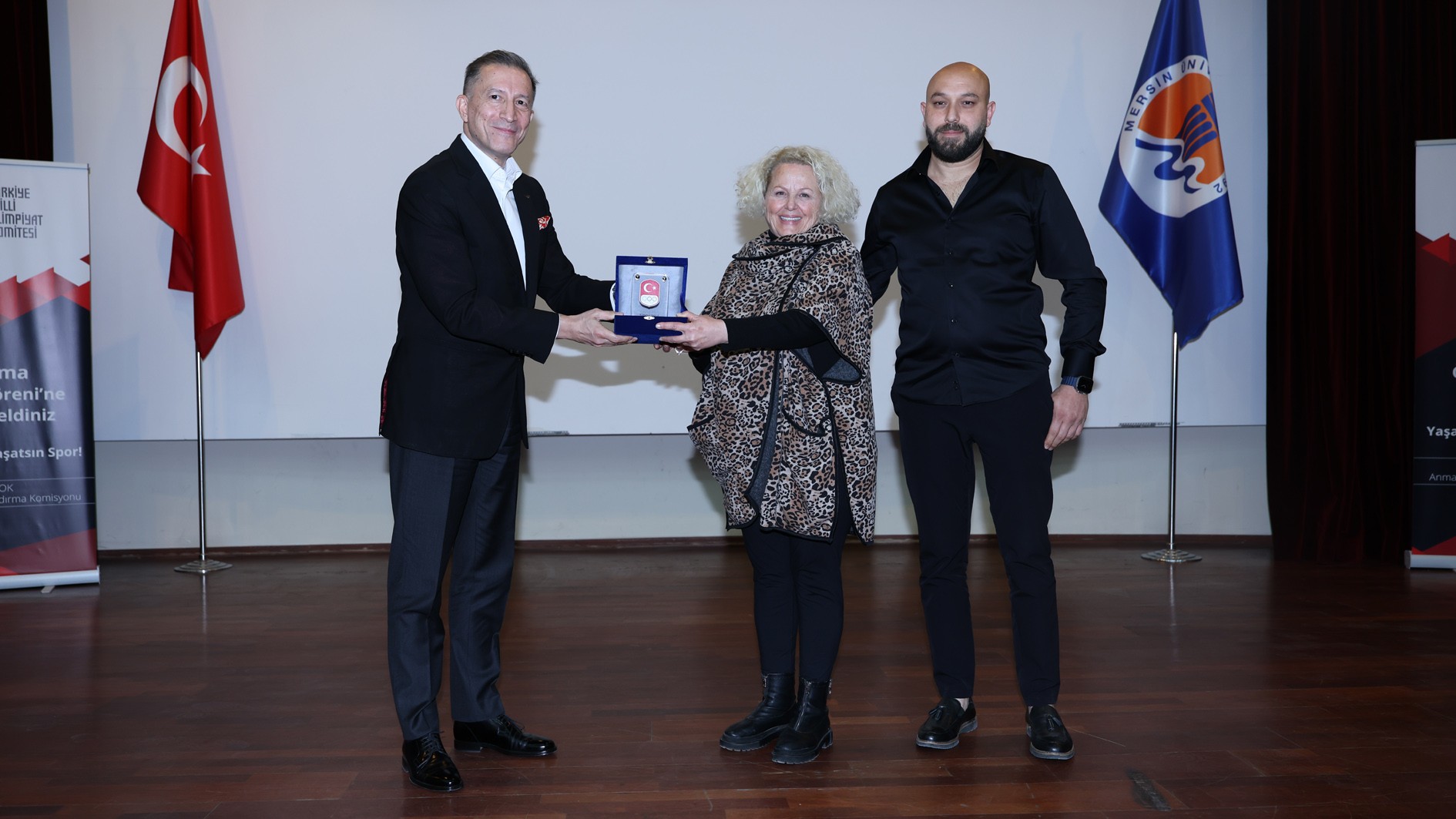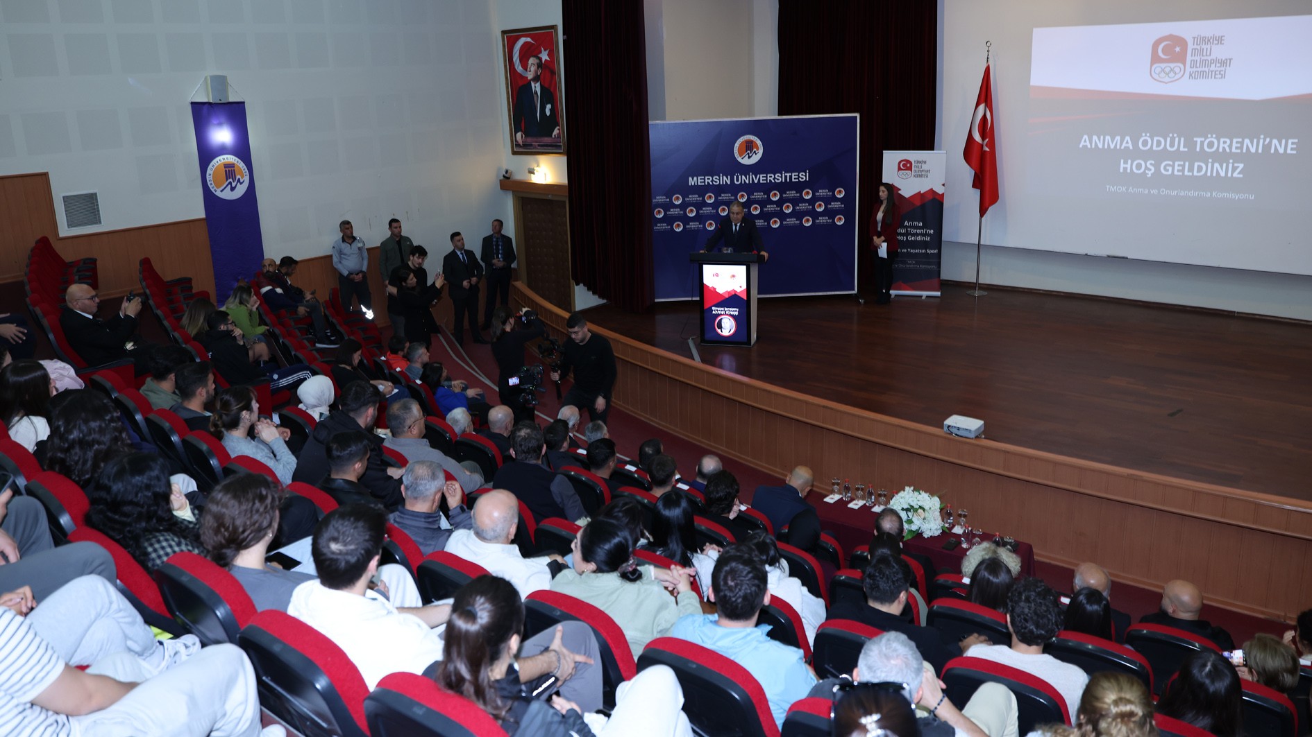 3 Aralık Çarşamba günü Türkiye Milli Olimpiyat Komitesi (TMOK) tarafından Üniversitemiz Prof. Dr. Uğur Oral Kültür Merkezi’nde gerçekleştirilen programa; TMOK Başkanı Ahmet Gülüm, TMOK Anma ve Onurlandırma Komisyonu Başkanı Necdet Ayaz, Rektörümüz Prof. Dr. Erol Yaşar, Rektör Yardımcımız Prof. Dr. Mehmet Çağrı Çetin, Spor Bilimleri Fakültesi Dekanımız Prof. Dr. Zekai Pehlevan, Mersinli Ahmet’in kızı Dilara Mersinli ve torunu Murat Mersinli, TMOK üyeleri Ömer Gürsoy, Nezir Önal, Mirza Egeli, Haldun Domaç ve Sevda Demirel, akademisyenler ve öğrencilerimiz katıldı.